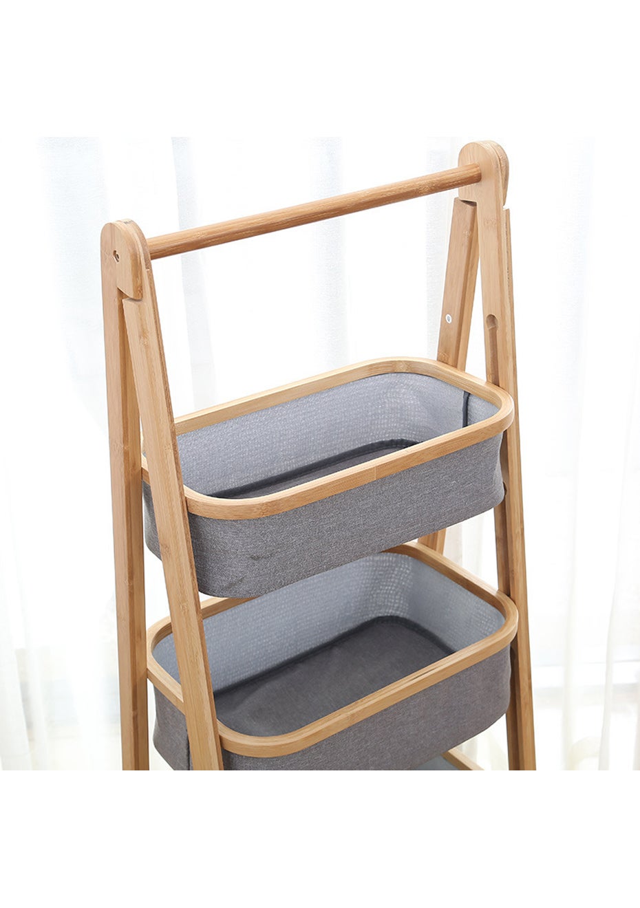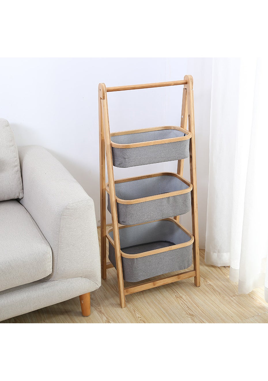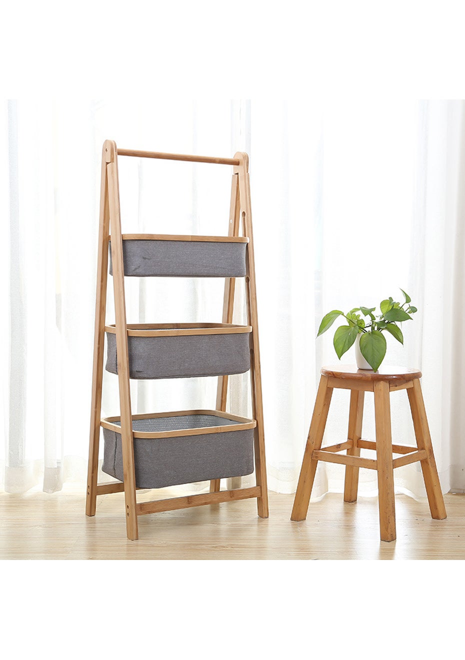 Natural Bamboo 3-Tier Laundry Basket Rack