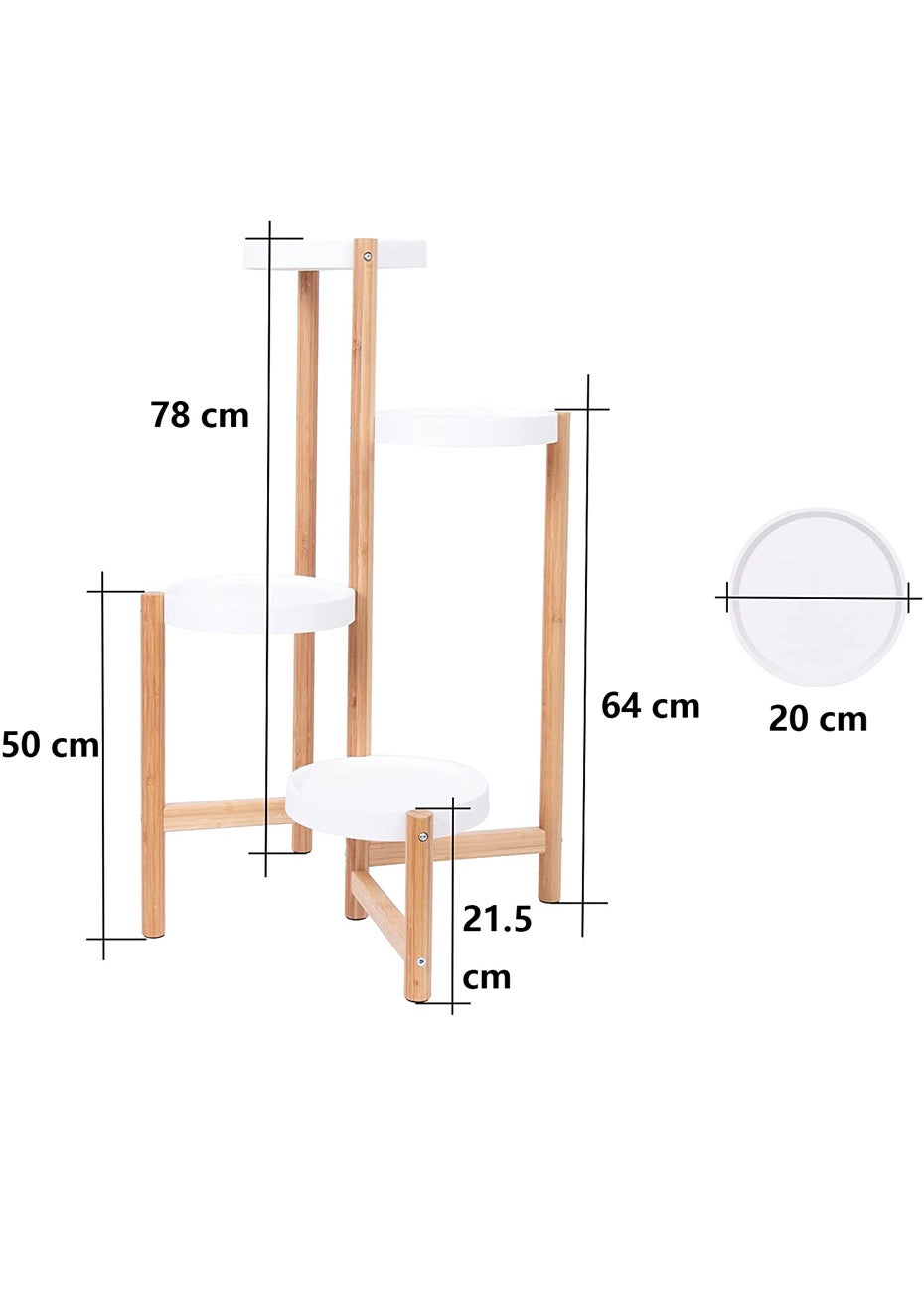 This 4 tier plant stand has the perfect size for any place! Its total height is 78cm. Each circular shelf has a 20cm diameter, each shelf bears capacity up to about 10kg.
