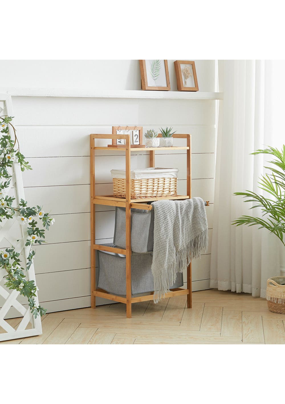 Multi-functional bamboo storage rack, large capacity, divided into grid storage, easy to store