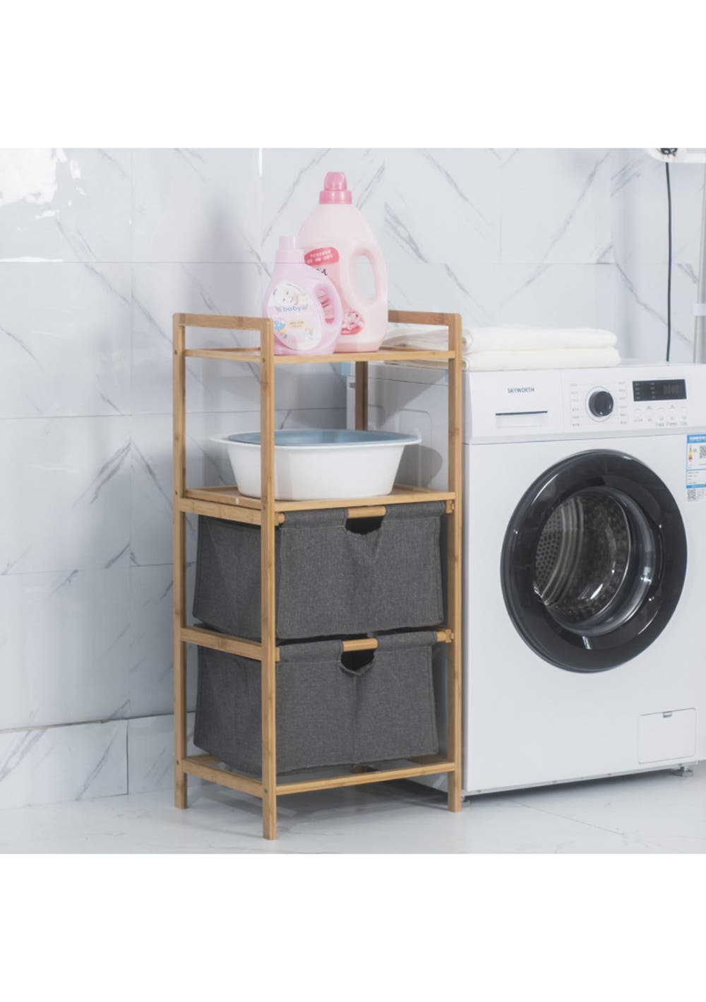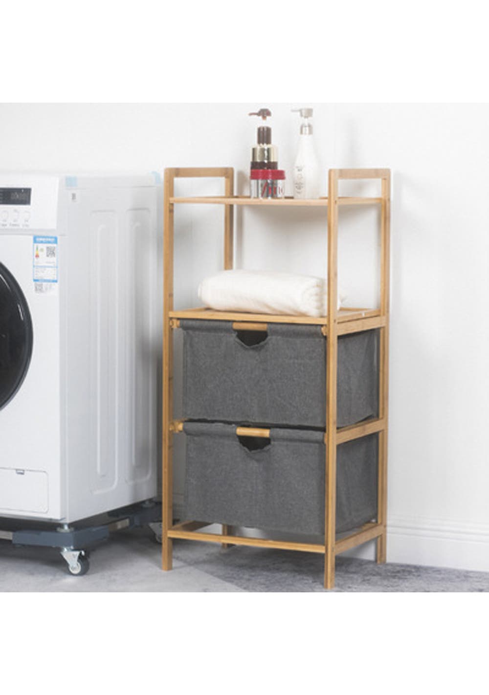 Natural Bamboo 2-Tier Multifunctional 2 Drawer Basket Rack