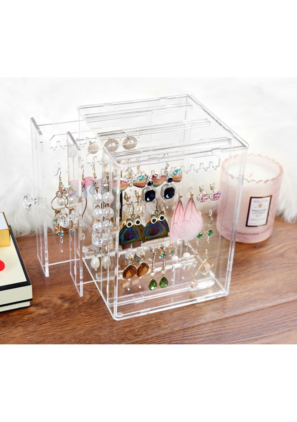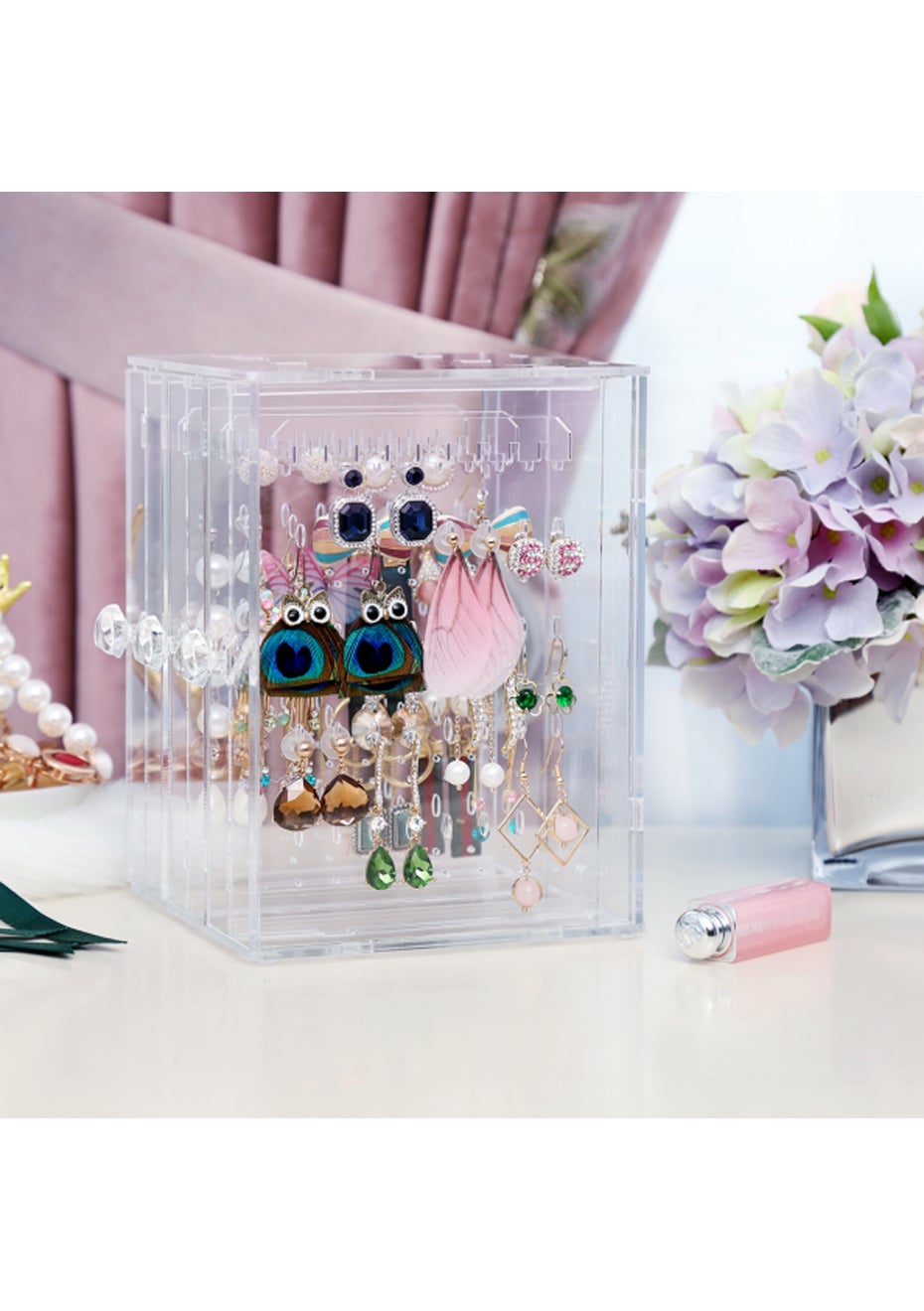 Contains 3 panels and each panel has 74 holes. So it can hang 37 pairs of earrings in each panel. In total, the box has 222 holes and can hold 111 pairs of earrings.