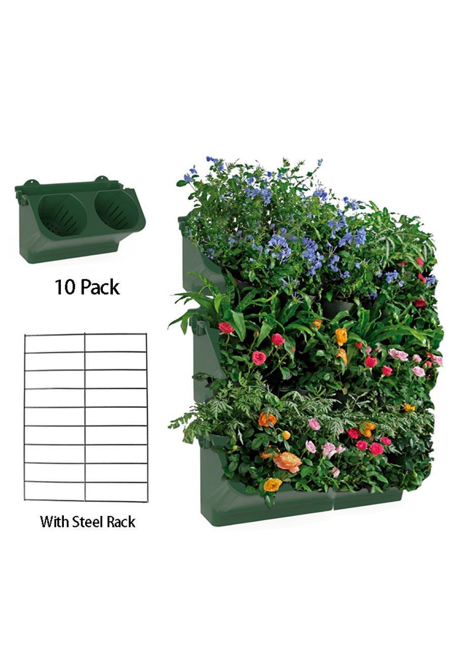10 Pack Vertical Wall Hanging Planters with Steel Rack