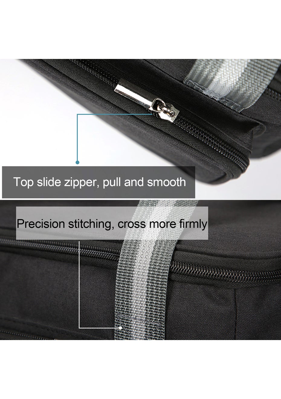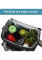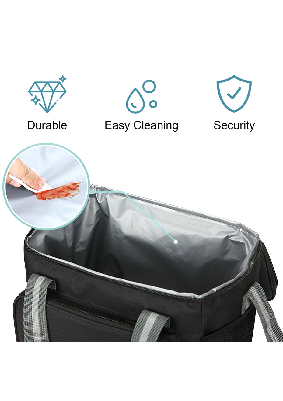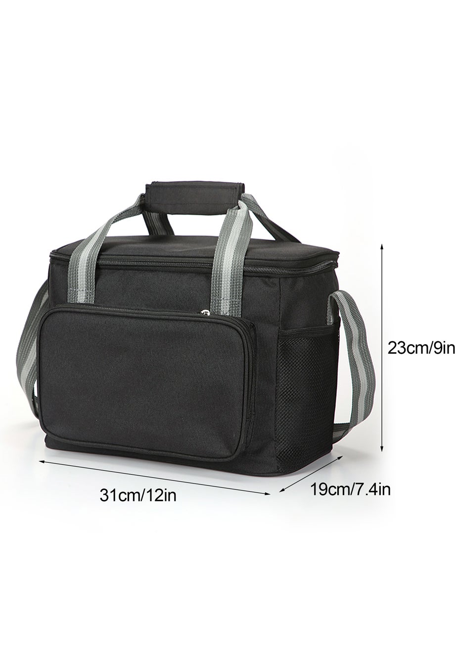 Features  The lunch bag have insulation function that keeps food and drinks cool or warm for at least 5 hours.  The stitching adopts hot-pressing technology, so there is no hole on the bag stitching, and it features heat and cold preservation, and easy to clean.  Lining is made from PEVA foil and has precision sewing thread. With smooth metal zipper, the bag is wear-resistant and its sturdy linen handle makes the bag extremely durable.  Large Capacity Multi-layer: The lunch bag features a main compartment with a large capacity open design that can easily hold 12 cans of coke or lunch boxes, fruit, sandwiches, cell phones, cosmetics and a variety of daily necessities.  The front zipper pocket is used for storing keys, cards, mobile phones, etc., and the side mesh eye pockets are used for storing water bottles, umbrellas, snacks, etc. .  Package Include  1 x Insulated Cooler Leakproof Tote Bag Material: Oxford Cloth, PEVA Foil Product dimensions (LWH): 31 x 23 x 19cm Weight: 400 g Material: Oxford Cloth, PEVA Foil Product dimensions (LWH): 31 x 23 x 19cm Weight: 400 g