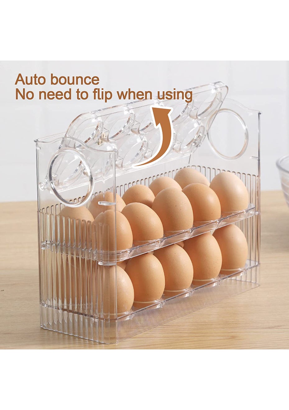 30 Eggs Holder for Refrigerator Flip Design<br><br>Material: PETl <br>Product dimensions (LWH): 20x26x10cm<br>Package dimensions (LWH):29x22x12cm <br> Weight:600 g<br>Feature<br>• SAVING SPACE: Egg storage container for the refrigerator can hold 30 eggs, which can be placed in the refrigerator door, making full use of the vertical space of the refrigerator, making the refrigerator look neat and orderly, and the groove design prevents it from being crushed or smashed. <br>• DURABLE MATERIAL: Our fridge egg storage box is made of environmentally friendly PET without bad odor. The separate egg trough leaves a suitable room for each egg, making the eggs breathe freely, make them keep fresh much longer. <br>• TURN-OVER DESIGN: The flip fridge egg holders top two layers can be turned over when each layer is used up, it is easier to take eggs and put them in. One grid holds one egg and can load the egg separately without bumping against each other. <br>• LARGE CAPACITY & STAY FRESH: The durable fridge egg holder is equipped with 30 slots to protect each individual egg, and the sliding date bar on the back allows you to easily record the storage date. To maximize the freshness of eggs. <br>• MULTIPURPOSE: This fridge egg tray for the refrigerator can be placed on the refrigerator shelf, on the fridge door, on the kitchen countertop, or taken to camping or to a party. The built-in handles make it easier to be moved and carried.<br><br><br>Package Include<br><br>1x Egg Holder