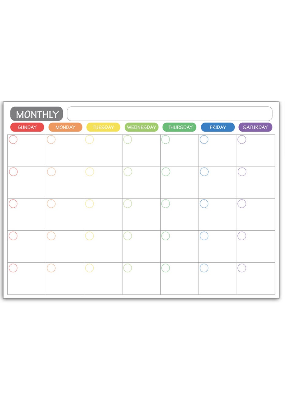 Monthly Fridge Calendar Whiteboard with Marker & Eraser<br>Material: PP<br>Product dimensions (LWH): 30 x 42 cm<br>Package dimensions (LWH): 34x5x5cm<br>Weight: 285g<br>Please put books on the weekly planner for at least 30 minutes before first use<br>Features:<br>• Robust Magnetic Calendar: Crafted with a thick and durable fridge calendar plate that's tear-resistant, this whiteboard calendar promises longevity. Unlike other flimsy calendars that fall off, this one stays securely on your fridge, always looking smooth without bubbles or bends.<br>• Versatile Application: More than just marking dates, this magnetic calendar whiteboard serves multiple purposes. Whether you need a meal planner, shopping list, family event planner, or an academic schedule, it fits every need. Perfect for home, office, kitchen, classroom, or even the dorm room.<br>• Organized Life: The monthly erasable schedules are perfect for jotting down tasks, meals, or anything you need to remember. With designated columns and ample space for notes, it acts as a visual to-do list that not only helps you stay on track but also gives a satisfying sense of accomplishment.<br>Package Content:<br>• 1XMagnetic Dry Erase Calendar Monthly Board<br>• 3XFine Point Markers<br>• 1XMagnetic Eraser