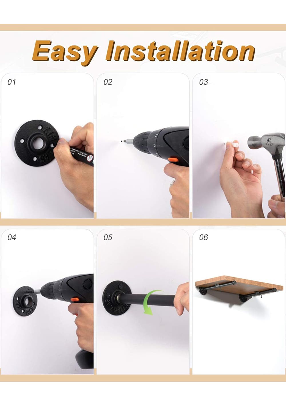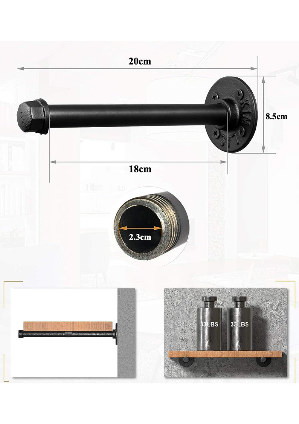 4-pack Industrial Iron Pipe DIY Floating Shelf Bracket-20CM<br><br>Material: Iron<br>Package dimensions (LWH): 33x13x5cm<br>Weight: 1.4kg<br>• Please note that the package does not include a wooden board.<br><br><br>Features:<br>• Black Matte Surface: Elevate the appearance of your shelf with the bracket's black matte surface, which complements the industrial design with a touch of sophistication.<br>• Pipe Shelf Brackets: Constructed from black iron and topped with a wear-resistant coating, these brackets are designed to stand up against daily wear and tear, scratches, corrosion, and tarnishing. Their design is reminiscent of vintage and industrial styles, making them a trendy choice for any decor.<br>• DIY Brackets: Set up is a breeze with these easy-to-install brackets. Simply secure the pipe shelving in place, and then you can place a wood board on top for an instant shelf. <br>• Maximized Convenience: These wall-mounted pipe shelves don't just serve a decorative purpose. They provide additional storage space where you need it, making organization easier and more convenient for you.<br>• Versatile Application: The shelf brackets are versatile and can be used in various settings including shops, workshops, motorhomes, backyards, rooms, kitchens, bathrooms, and more. <br><br>Package Includes:<br>• 4X [¾" Cast Iron Pipe Cap]<br>• 4X [¾" Cast Iron Floor Flange]<br>• 4X [¾" Cast Iron Industrial Pipe -20cm]<br>• 16 x Long Screws Set<br>• 8 X strap Screws set<br>• 4 X pipe Straps<br>• 16X Wall Anchors<br>Please note that the package does not include a wooden board.