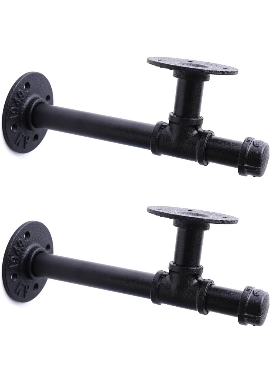 2Pack Industrial Pipe DIY Shelving Brackets-34CM<br><br>Material: Iron<br>Package dimensions (LWH): 33x13x5cm<br>Weight: 1.6kg<br><br>Step up your interior design game with these industrial pipe DIY shelving brackets. Whether you're adding a rustic touch to your living space or optimizing storage in your office, these brackets are sure to impress.<br><br>Features:<br>• Black Matte Surface: The black matte surface finish lends an elegant touch to the bracket's robust industrial design.<br>• Good Helper to Save Space: These multi-purpose brackets can be used both as wall brackets and coat racks. They are the ideal space-saving solution, providing additional space to display cherished items like photos, plants, or decorative pieces. They're also versatile enough for hanging items in various parts of the house, such as hallways, kitchens, bedrooms, and even the office.<br>• A Household Must-Have: Installation is a breeze. Each bracket is designed for straightforward placement, ensuring you can set them exactly where you desire. You can let your creativity run wild and create your DIY decor masterpiece.<br><br>Package Includes:<br>• 2X [¾" Cast Iron Pipe Cap]<br>• 4X [¾" Cast Iron Floor Flange]<br>• 2X [¾" Cast Iron Tee]<br>• 2X [¾" Cast Iron Industrial Pipe -4cm]<br>• 2X [¾" Cast Iron Industrial Pipe -5cm]<br>• 2X [¾" Cast Iron Industrial Pipe -25cm]<br>• 8 x Long Screws Set<br>• 8 X strap Screws set<br>• 8X Wall Anchors<br>• Please note that the package does not include a wooden board.<br>•