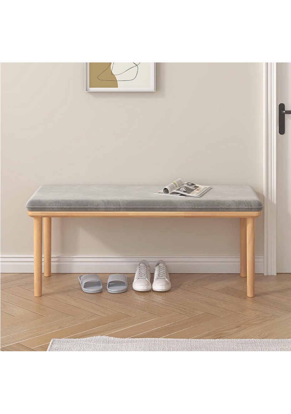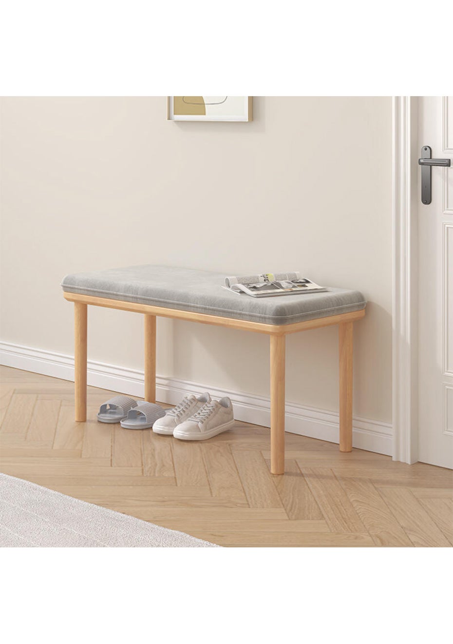 Shoe Rack Bench for Entryway - 100CM<br>Material: Wood and fabric<br><br>Product dimensions (LWH): 100×38×42cm<br>Package dimensions (LWH): 104X44X14CM<br>Weight: 6.7Kg<br>Product Overview:<br>Introducing our Elegant Shoe Rack Bench for your Entryway - a marriage of style, function, and convenience. Crafted from eco-friendly wood and topped with a grey fabric cushion, this shoe rack bench offers a comfortable seating surface while providing ample space to store your footwear. The sturdy frame supports up to 80kg of weight. Designed to blend seamlessly into various spaces, it's an essential addition to your entryway, hall, foyer, bedroom, mudroom, or office.<br>Key Features & Advantages:<br> Soft Cushion Seating: This shoe rack features a bench designed with a cushioned seating surface upholstered in a stylish grey fabric for comfortable use.<br> Elegant Design: Unlike other products, our shoe rack bench showcases a fashionable design that adds a touch of elegance to any room.<br> Sturdy & Eco-friendly: With a 80kg seat weight capacity, this bench offers a robust and durable design. The environmentally friendly wood construction ensures sustainability and longevity.<br> Versatile Fit: Measuring 100x38x42cm, this shoe rack bench is designed to fit seamlessly into a variety of spaces, making it a versatile addition to your home or office.<br> Easy Assembly: The bench comes with easy-to-follow instructions and alphabetic parts for quick and straightforward assembly. We offer excellent customer service to cover all your needs before and after purchase.<br> <br>Package Includes:<br>• 1 x Shoe Rack Bench for Entryway<br>
