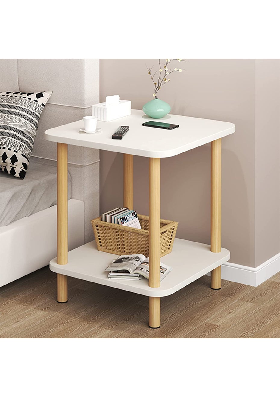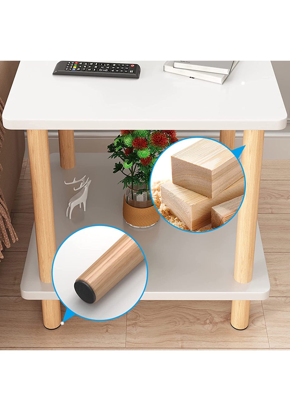 2-Tier Tall Square Wooden Side Table Bedside Table-White