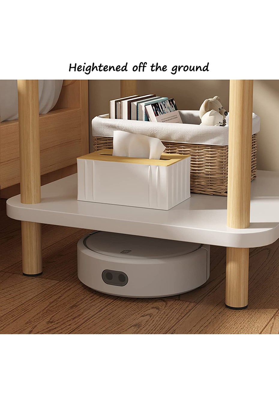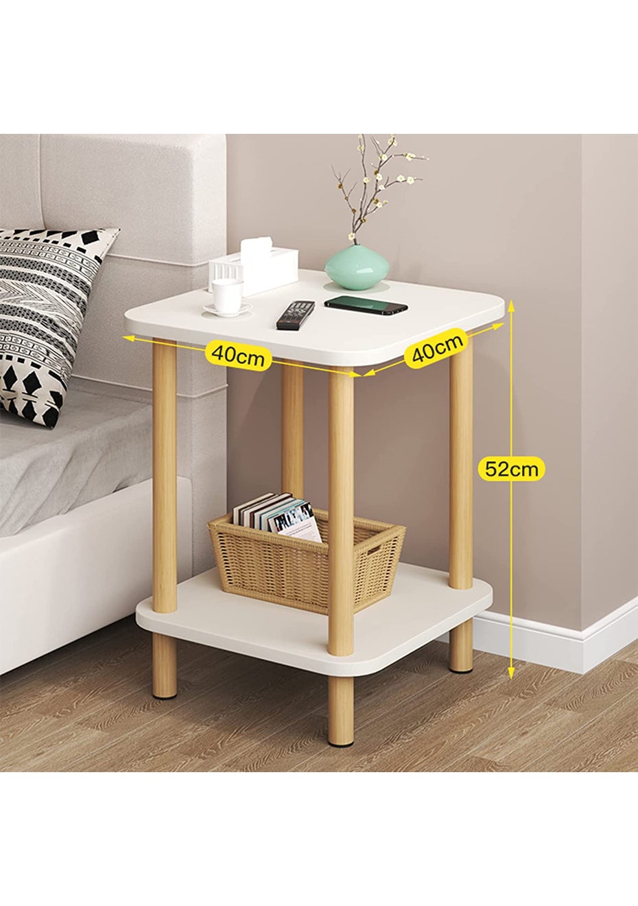 2-Tier Tall Square Wooden Side Table Bedside Table White