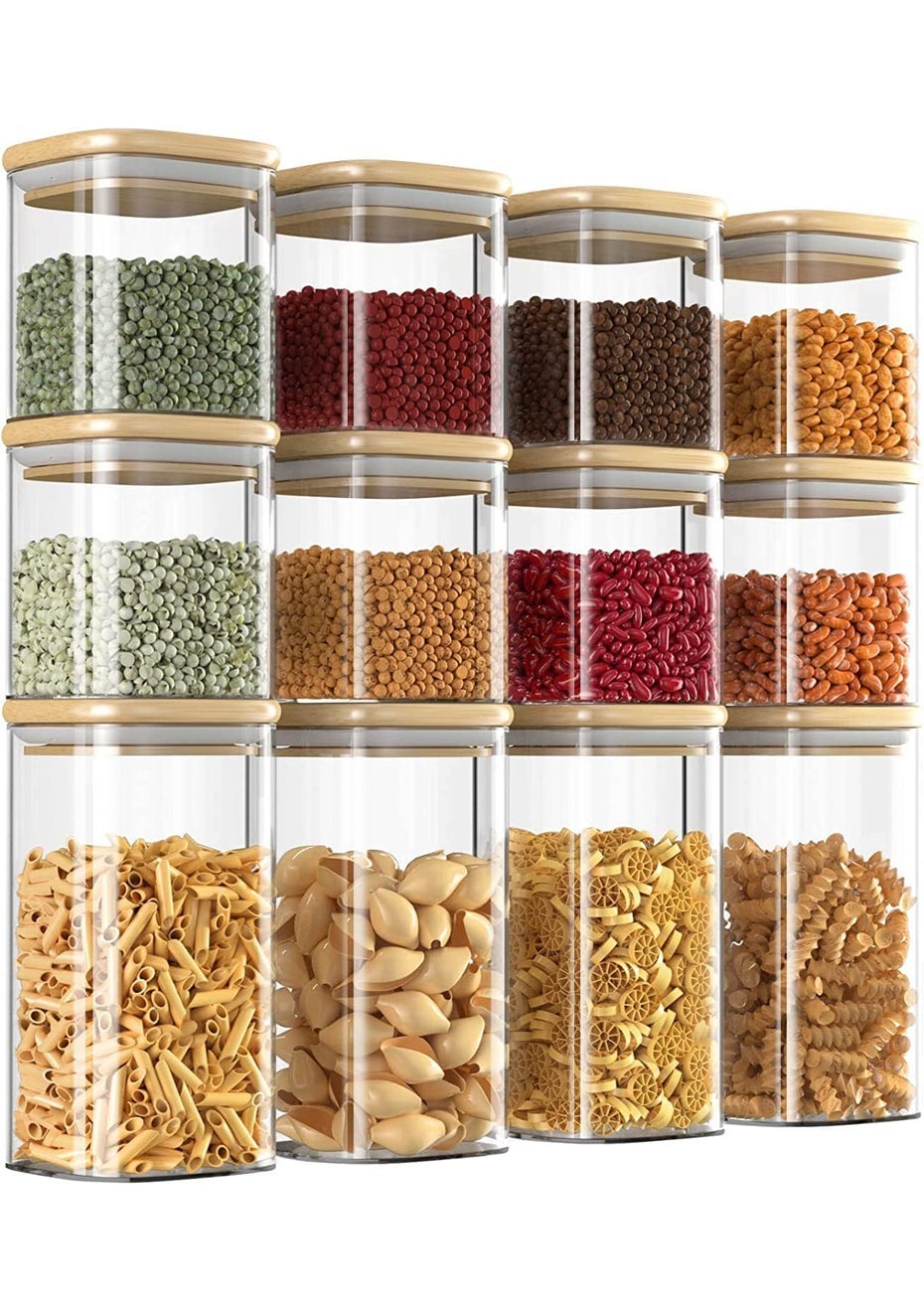 Set Of 12 Square Glass Storage Jars With 144pc Label Set Material: High borosilicate glass, Bamboo lids with silicone seals Package Dimensions (LWH): 41 x 41 x 11 cm Weight: 2.8 kg Large Jar Capacity: 700ml (Dimensions: Φ8×15.5cm, Without Lid: Φ8×15cm) Small Jar Capacity: 350ml (Dimensions: Φ8×8.5cm, Without Lid: Φ8×8cm) Organize and beautify your kitchen with our Set of 12 Square Glass Storage Jars with Bamboo Lids. Made from high borosilicate glass, these jars are clear, durable, and non-toxic, providing a safe and stylish storage solution for your kitchen essentials. Each jar comes with a bamboo lid featuring a silicone seal to ensure airtight storage, keeping your items fresh for longer. This set includes 4 large jars and 8 small jars, perfect for a variety of uses. As a bonus, you'll receive a 144-piece Spice Jar Label Set for easy identification and organization. Key Features: 12 Piece Glass Jars: This set includes 4 large jars (700ml) and 8 small jars (350ml), providing ample storage space for various kitchen items. The jars are stackable, making them space-efficient and easy to store. Airtight Storage Jars: Each jar comes with a bamboo lid and silicone seal to prevent air exposure, ensuring your contents stay fresh and protected. Healthy Materials: Made from high borosilicate glass, these jars are non-toxic and free from lead and harmful metals. The bamboo lids are natural and easy to clean, providing a healthier alternative to plastic or metal lids. Clear and Durable: The high-quality glass is clear, allowing you to easily see the contents, and durable, resistant to cracks and temperature changes. Versatile Storage Solution: Perfect for storing a variety of items such as spices, jams, chutneys, rice, sugar, flour, tea, coffee, and more. These jars add a touch of elegance to your kitchen while keeping it organized. Bonus Spice Jar Label Set: Includes a 144-piece label set to help you identify and organize your spices and other stored items effortlessly. Package Includes: 4 x 700ml Glass Storage Jars 8 x 350ml Glass Storage Jars 1 x 144pc Spice Jar Label Set