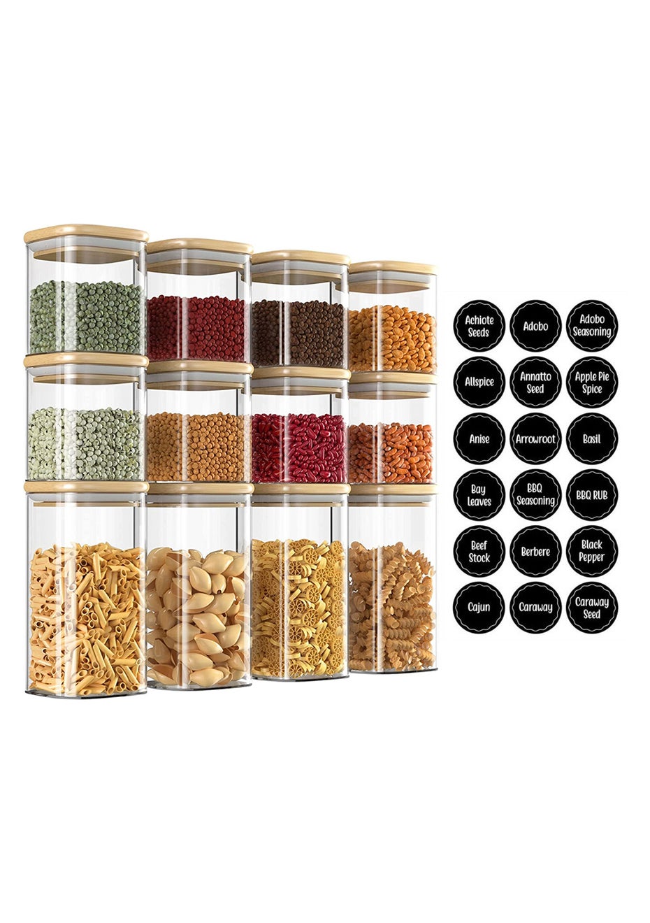 12 Piece Glass Jars: This set includes 4 large jars (700ml) and 8 small jars (350ml), providing ample storage space for various kitchen items. The jars are stackable, making them space-efficient and easy to store.