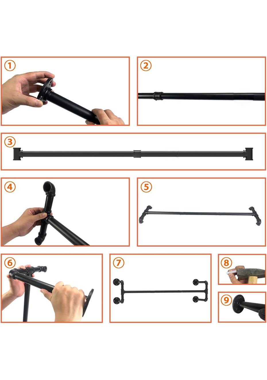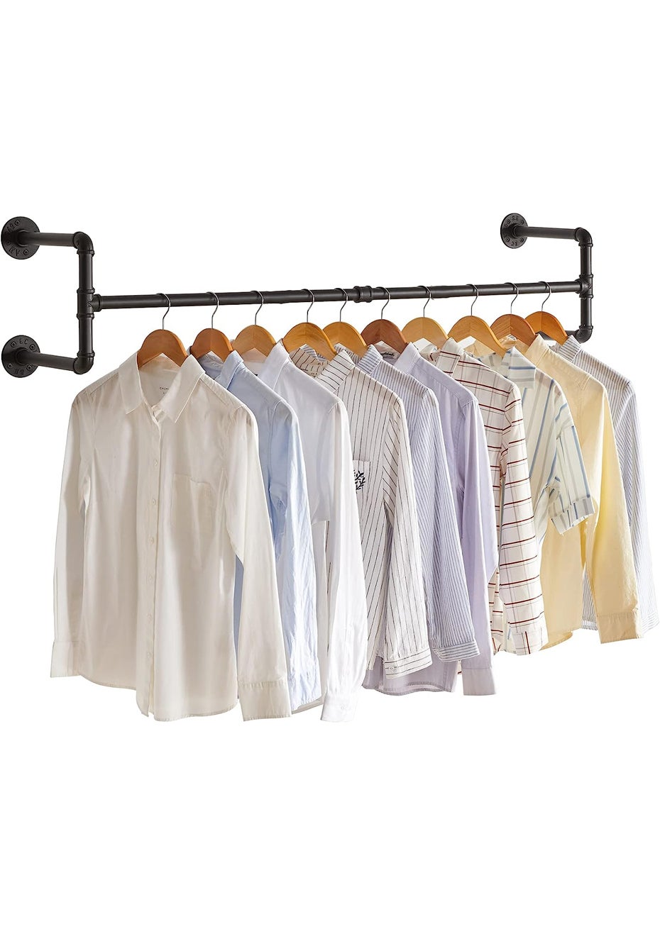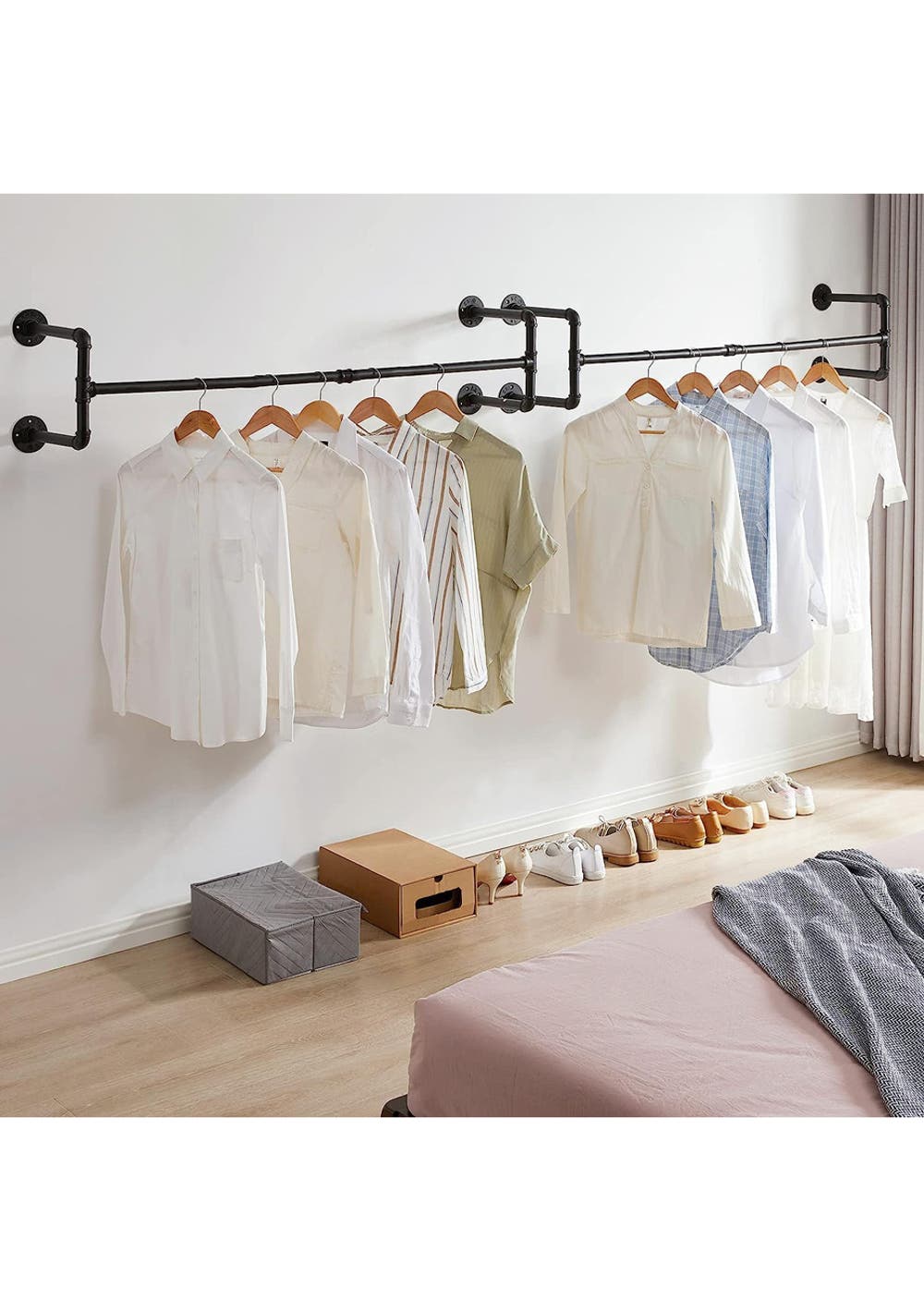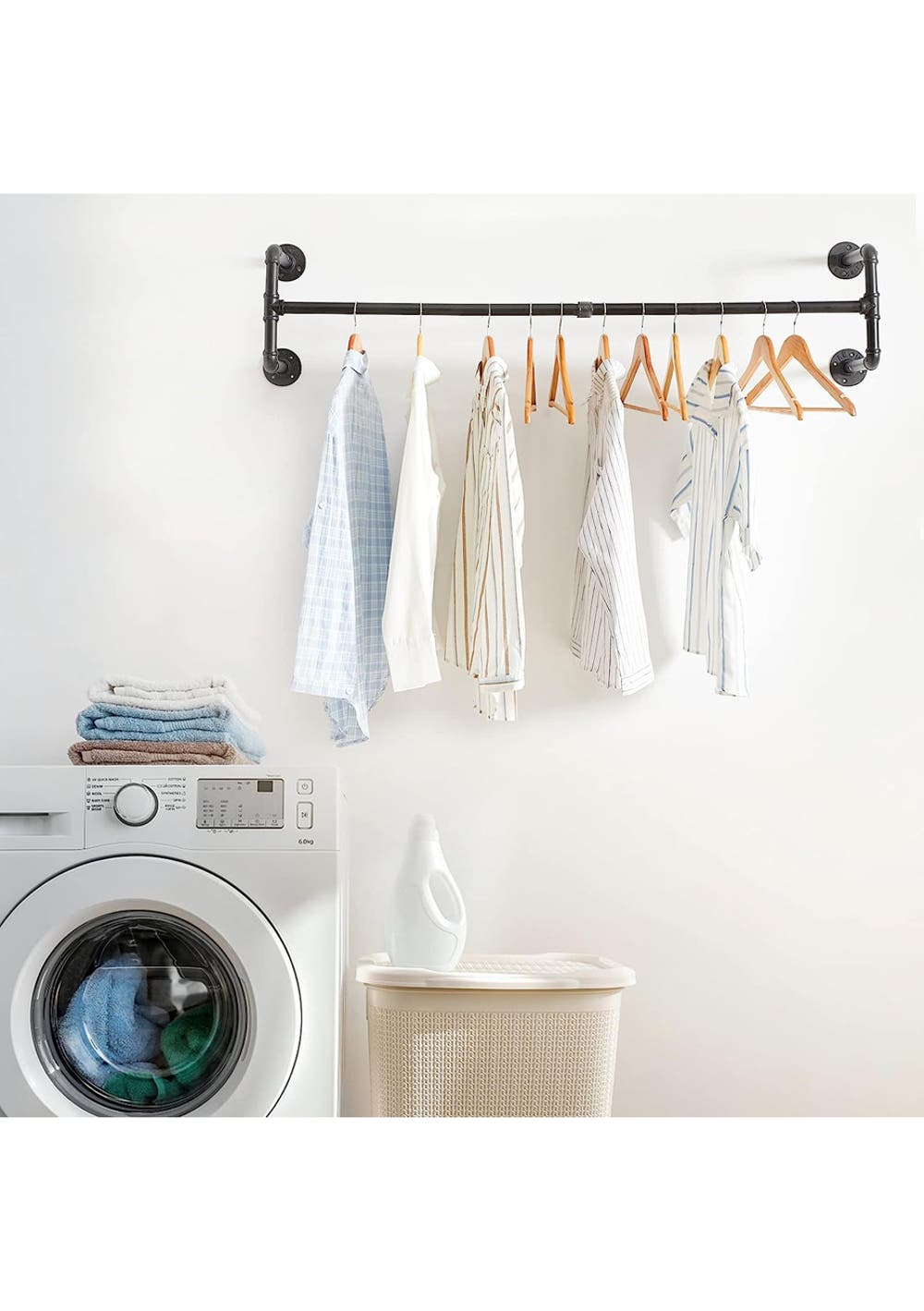 Industrial Pipe Garment Bar - 125CM<br>Material: Iron<br>Product dimensions (LWH): 125(L)cm × 29(H)cm<br>Package dimensions (LWH): 120x12x12cm<br>Weight: 2.8KG<br>Features:<br>• 【Product Size】: This Industrial Pipe Garment Bar is assembled using a 3/4" thread. The Garment Bar length is 120cm(60cmX2), with overall measurements being 125cm L x 29cm H.<br>• 【Black Matte Surface】: The product features a black matte surface finish, lending an elegant touch to its robust industrial design.<br>• 【Space-Saving & Convenient】: Tired of ironing out wrinkles from folded clothes due to lack of closet space? This wall-mounted clothing rack provides the ideal solution by giving you a space to hang your clothes, reducing wrinkles and saving you time.<br>• 【Sturdy and Durable】: Crafted from strong, malleable iron, this clothes hanging rack can support over 40KG of weight. Its industrial design is further enhanced by an electroplated protective coat for corrosion resistance and prevention of rust accumulation.<br>• 【Versatile Use】: This garment bar isn't just great for clothes, hats, and scarves in laundry rooms, closets, hallways, entryways, bedrooms, and clothing retail stores. You can also use it to hang towels or plants for added room decoration. Its stylish design integrates perfectly with your home decor.<br>• 【Easy Installation】: All parts of this rack are detachable. Make sure to screw them tightly before mounting it to a solid wall. The package includes hardware for mounting on concrete, tile walls, or other types of walls.<br>Package Includes<br>4 x [¾" Cast Iron Floor Flange]<br>1 x [¾"Cast Iron Coupling]<br>2 x [¾" Cast Iron Tee]<br>4 x [¾" 90 Degree Elbow Connector]<br>4 x [¾" Cast Iron Industrial Pipe -15cm]<br>4 x [¾" Cast Iron Industrial Pipe -25cm]<br>2 x [¾" Cast Iron Industrial Pipe -60cm]<br>4 x Screws Kit