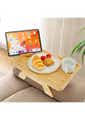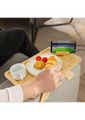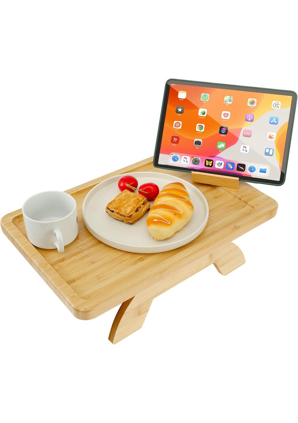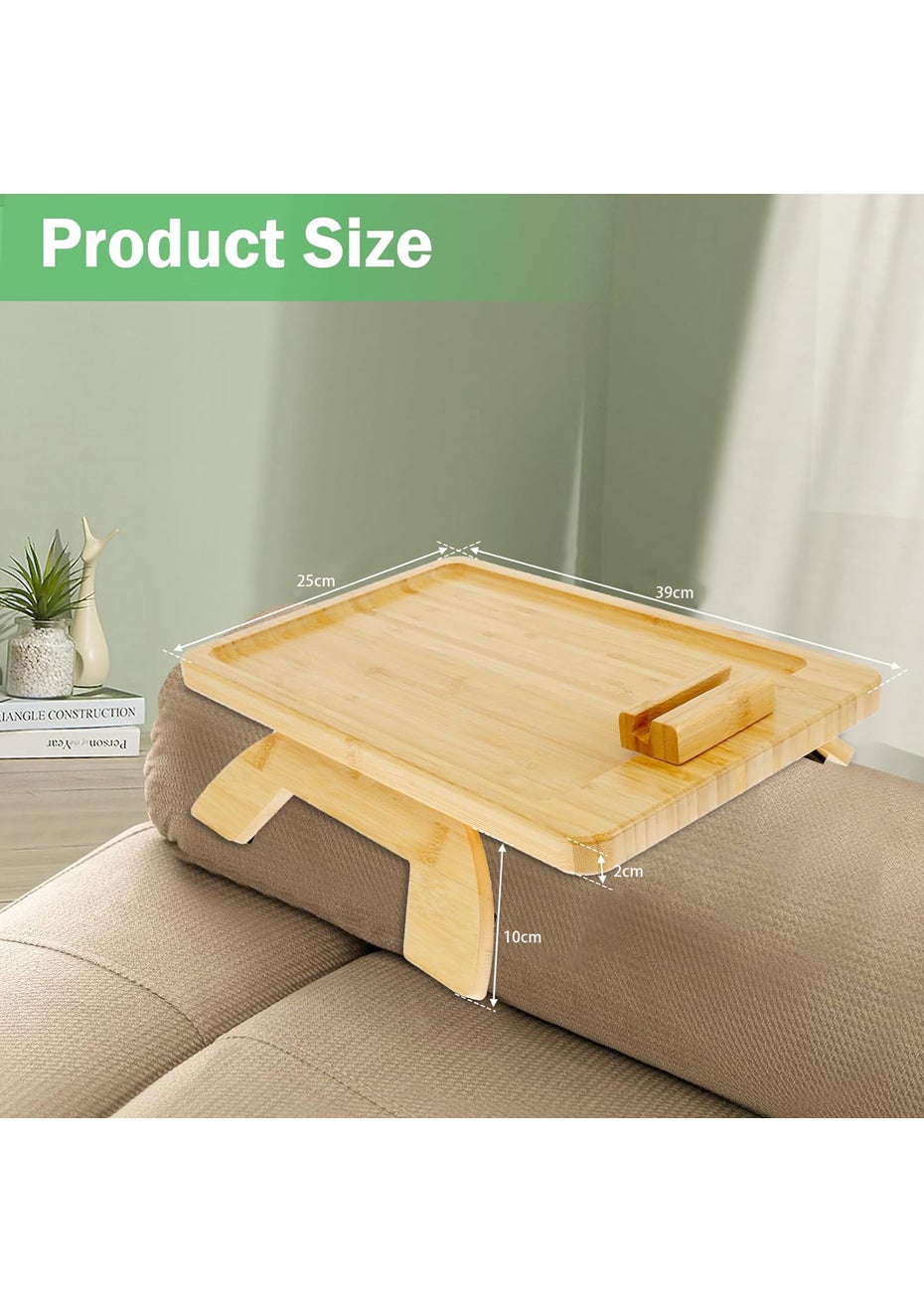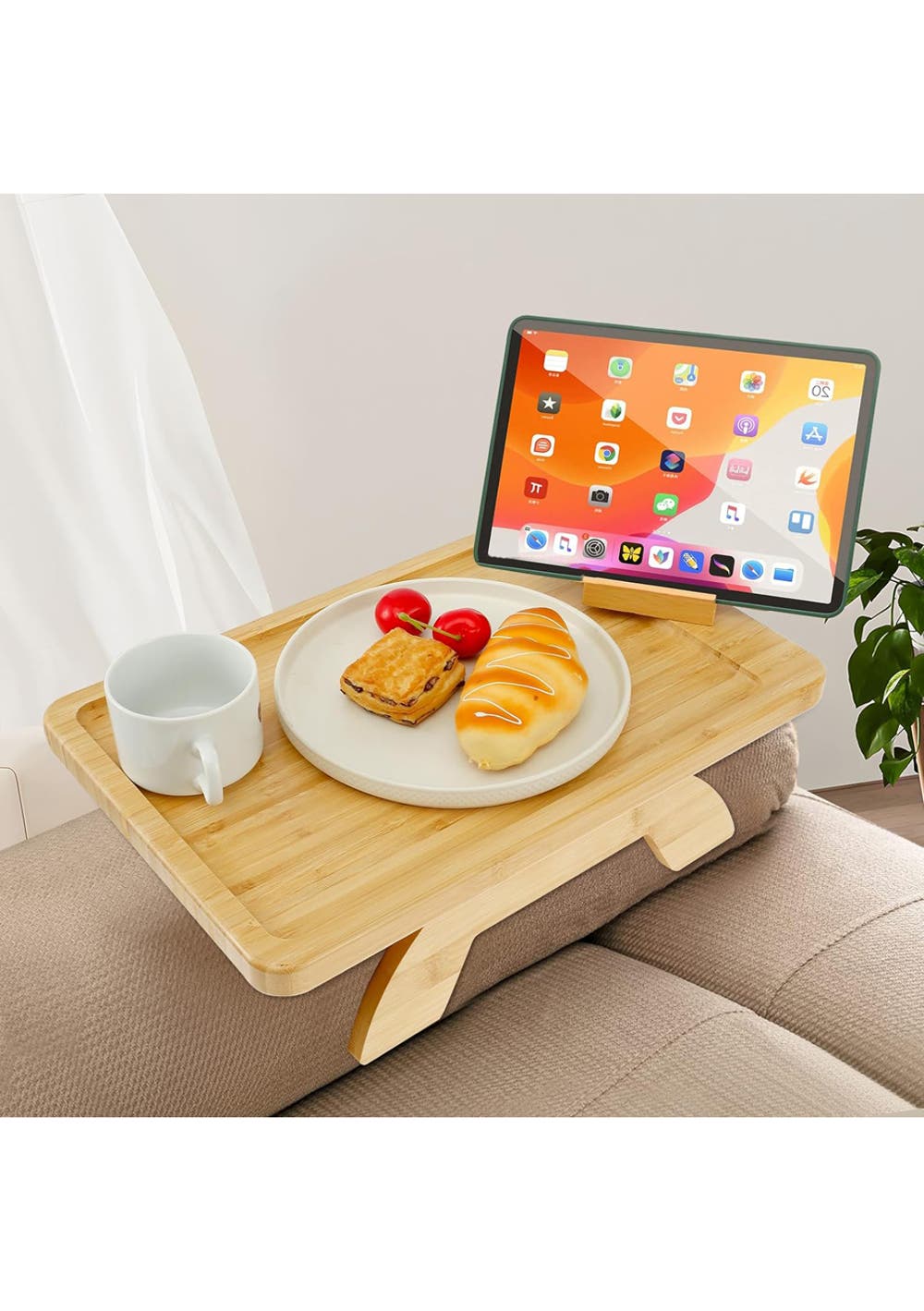 360° Rotating Phone Holder: This sofa arm tray table is equipped with a 360° rotating phone holder that offers different viewing angles, making it perfect for watching videos while eating and drinking. The quality spring-back hinge at the bottom ensures stability, preventing shaking and sliding, thus keeping your food and beverage secure.