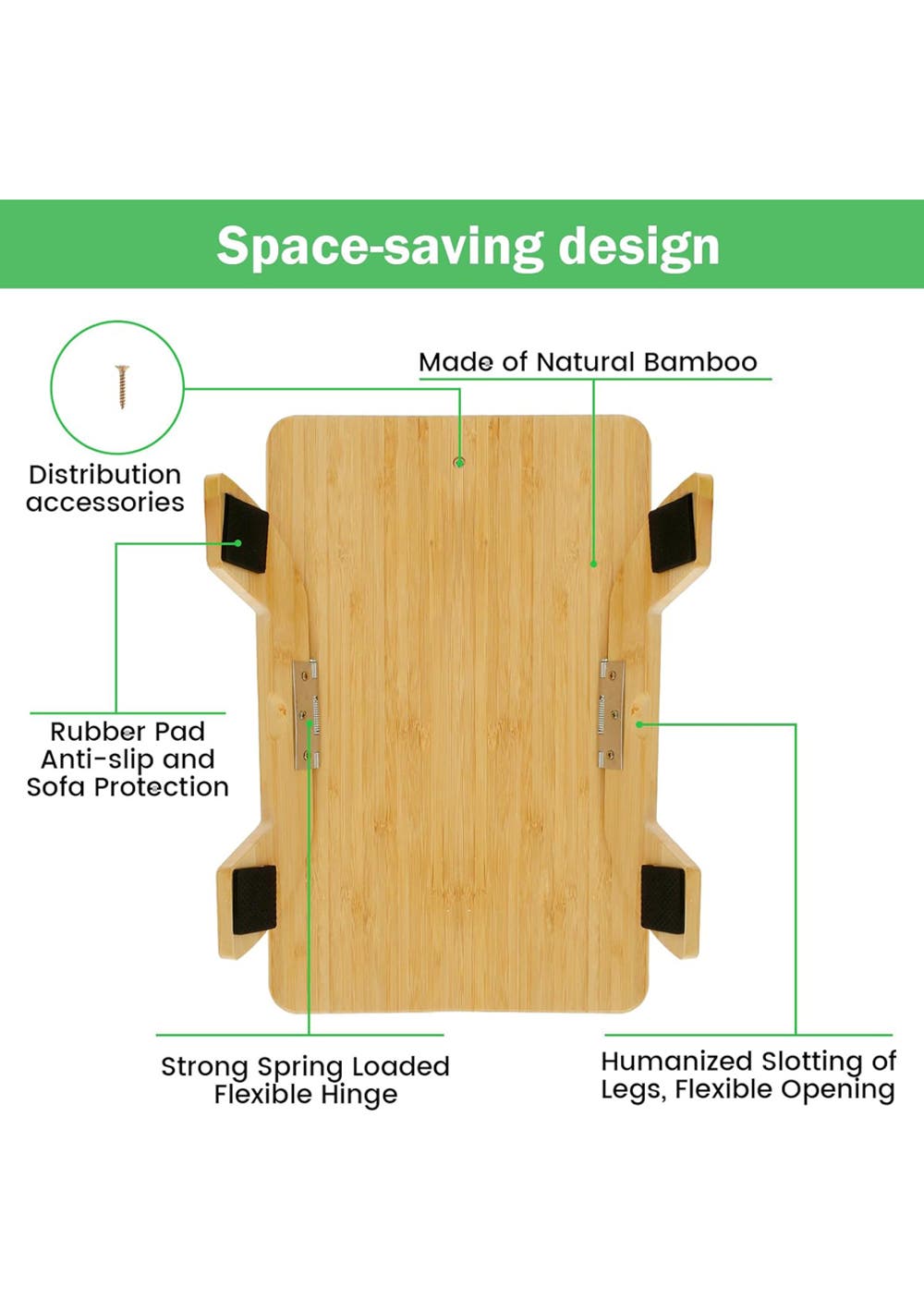 Premium Quality Bamboo: Made from premium bamboo wood that is strong and durable. The exterior edges are finely sanded smooth, enhancing its beautiful texture. The top of the tray table has a concave inward design to prevent items from falling.