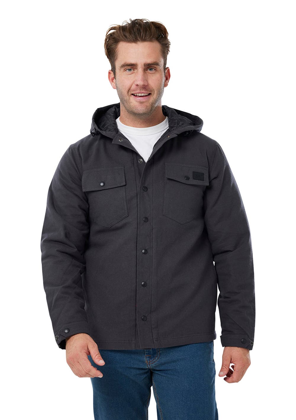 CAT - Men's Flannel Snap Front Lightweight Insulated Hooded Jacket - Washed Black