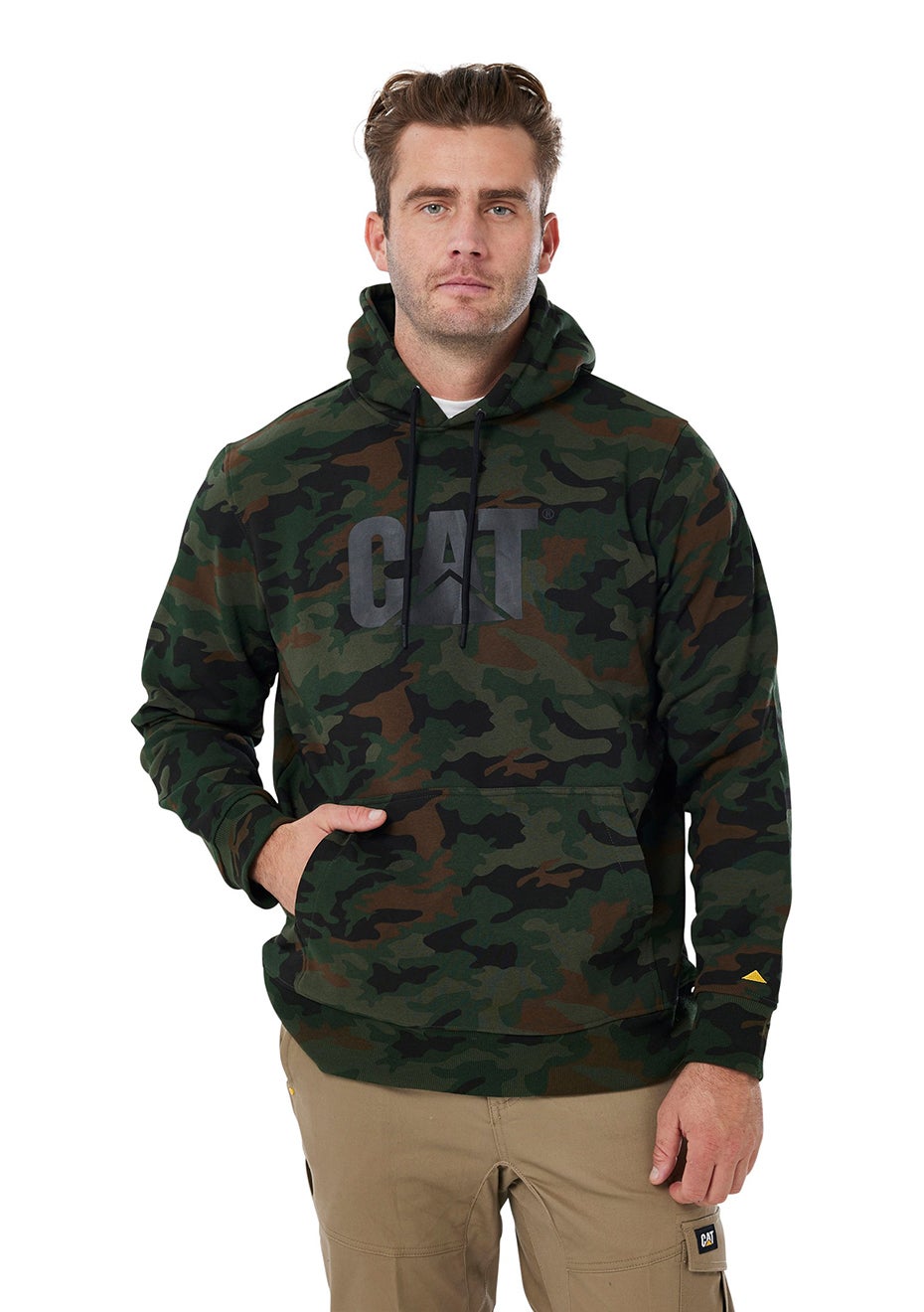 CAT - Men's Fleece Cat Logo Printed Pullover Hoodie - Deep Woodland Camo