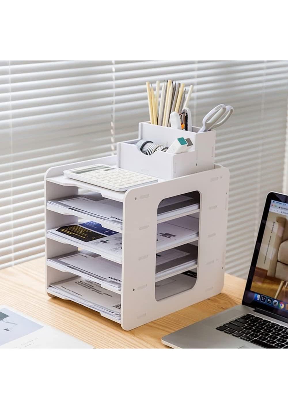 Desktop A4 Paper File Storage Organizer Holder<br><br>Material: PVC MDF<br>Product dimensions (LWH): 25.5×31×28cm<br>Package dimensions (LWH): 30 x 33 x 6 cm<br>Weight: 1.4 kg<br><br>Key Features:<br>• Optimized Desktop Storage: Organize your workspace with ease. This organizer is designed for systematic storage of A4 papers, folders, magazines, documents, and more, ensuring quick access to your essentials. Whether you're at home or in the office, keep your desk clutter-free and your files within arm's reach.<br>• Robust & Stable: Constructed from eco-friendly wood-plastic composite, this file holder boasts a secure structure. The use of screws ensures it remains steady and stable, even when heavily loaded, preventing any accidental tip-overs.<br>• DIY Assembled: Assemble it yourself without any fuss! With pre-drilled holes and easy-to-follow instructions, setting up this organizer is a breeze. It takes just 5-10 minutes, requires no additional tools, and offers the satisfaction of DIY assembly.<br>• Top-Grade Material: Made of high-quality wood-plastic board, this product ensures long-lasting durability. It's wear-resistant, oxidation-resistant, and maintains its shape over time. Users can be assured of its safety, given that it's odorless and poses no health risks.<br>• Thoughtful Design: Every detail is meticulously crafted. The side panels sport a hollowed-out design, offering ease of movement, ventilation, and protection against mold and moisture. The partitions come with grooves for swift file access, and its smooth, curved edges ensure users remain safe from accidental scratches.<br><br>Package Includes:<br>• 1 X Desktop A4 Paper File Storage Organizer Holder<br>