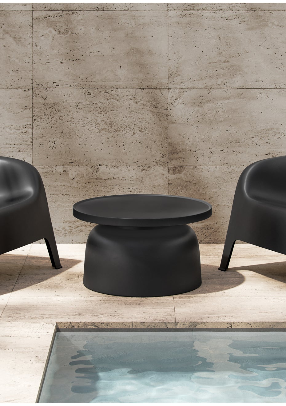 Resistant to water and UV rays, this piece will be easy to clean and maintain for years to come. This moulded table is durable and sturdy, a minimalistic design that looks great on its own or styled with your preferred coffee table books, flowers or drinks.