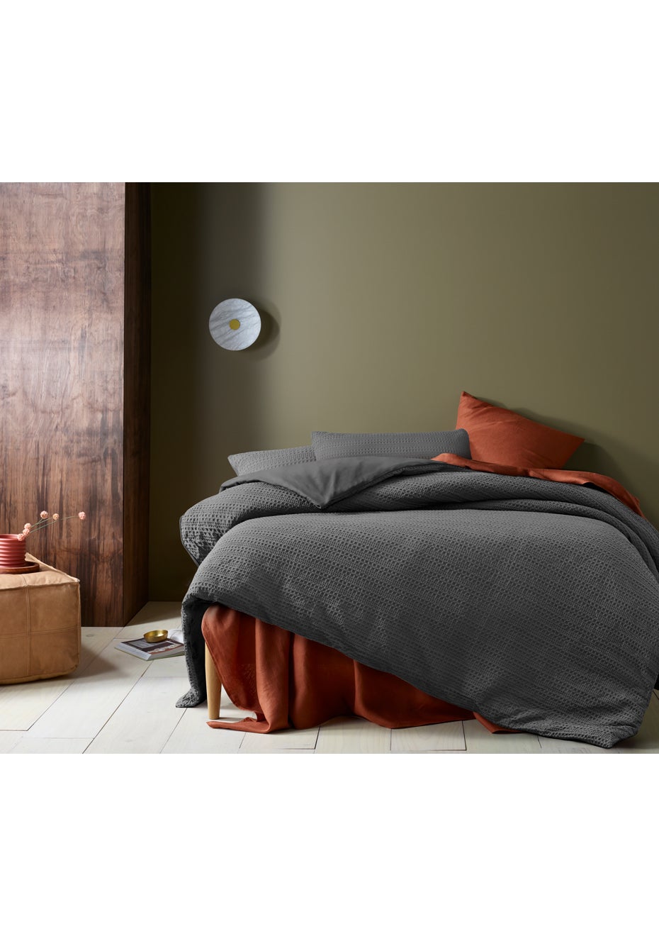 Soho Waffle Dark Grey Quilt Cover Set - King Bed