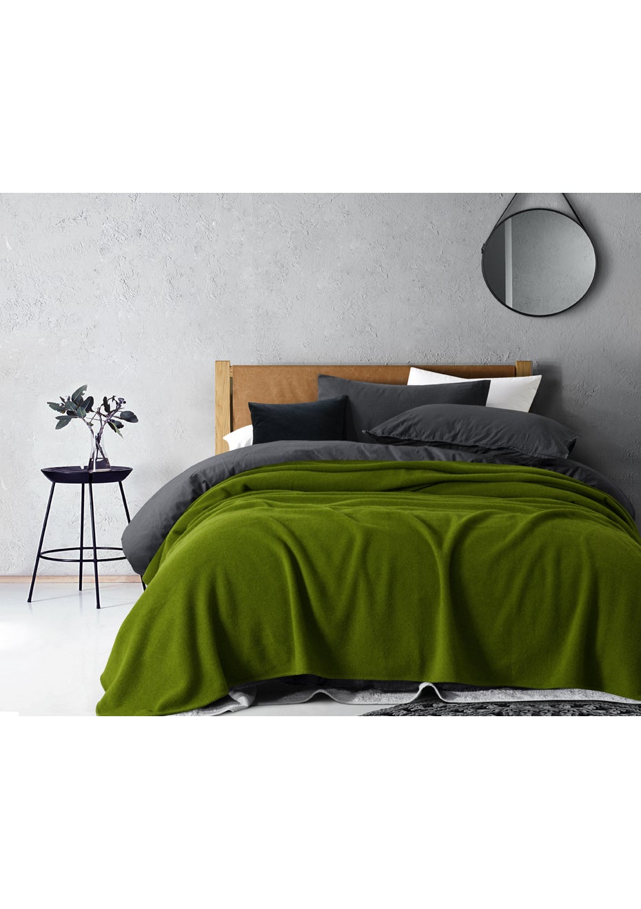 Moss Green Wool Blanket - Super King Bed