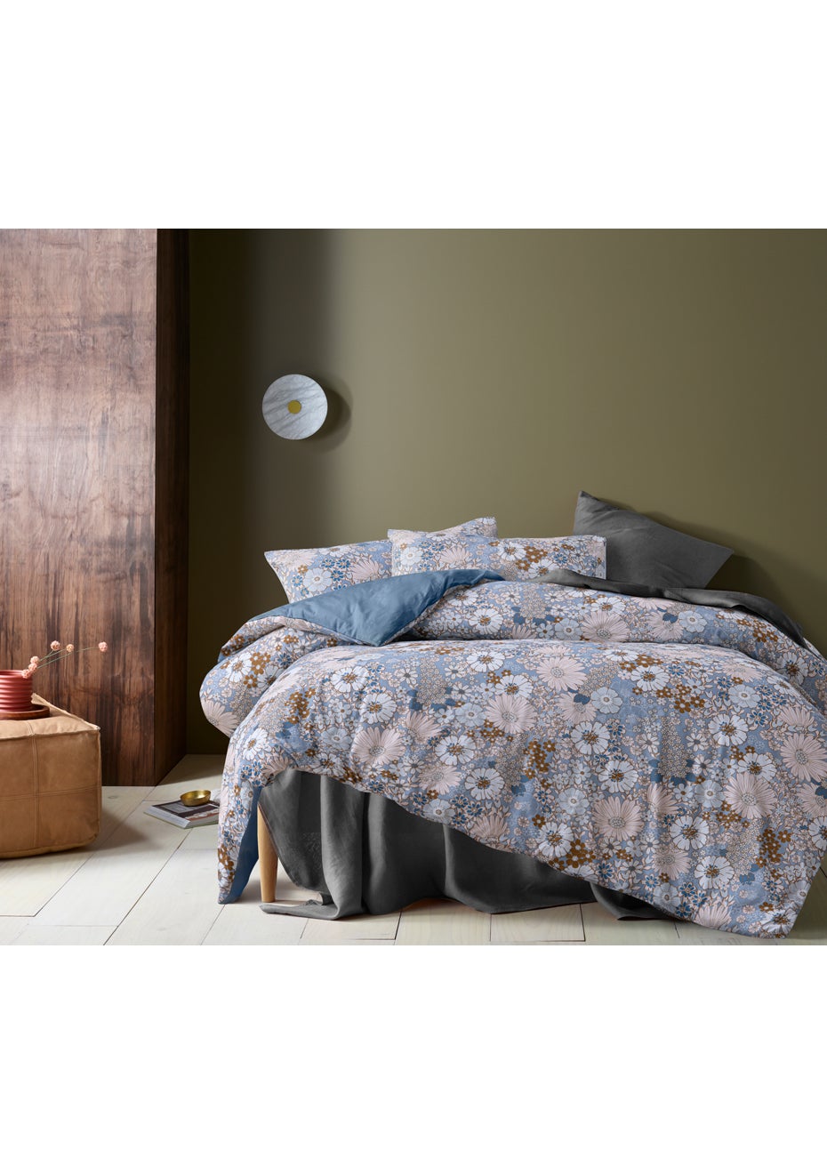 Rainbow Garden Blue Washed Cotton Quilt Cover Set - Queen Bed