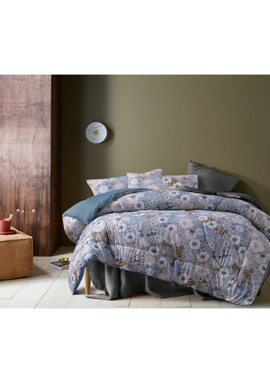 Rainbow Garden Blue Washed Cotton 3 Piece Comforter Set - Double Bed