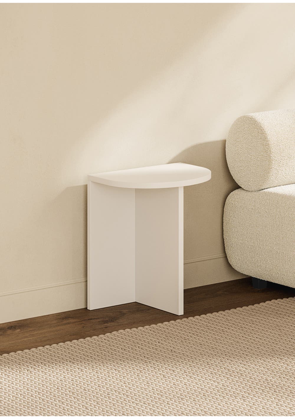 Its semi-circular shape is meant to be placed at the edge of a sofa or against a wall. A minimalistic design that looks great on its own or styled with your preferred coffee table books, flowers or drinks.
