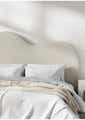 Upholstered in luxe linen look, this headboard features a modern wave design for an elevated aesthetic.