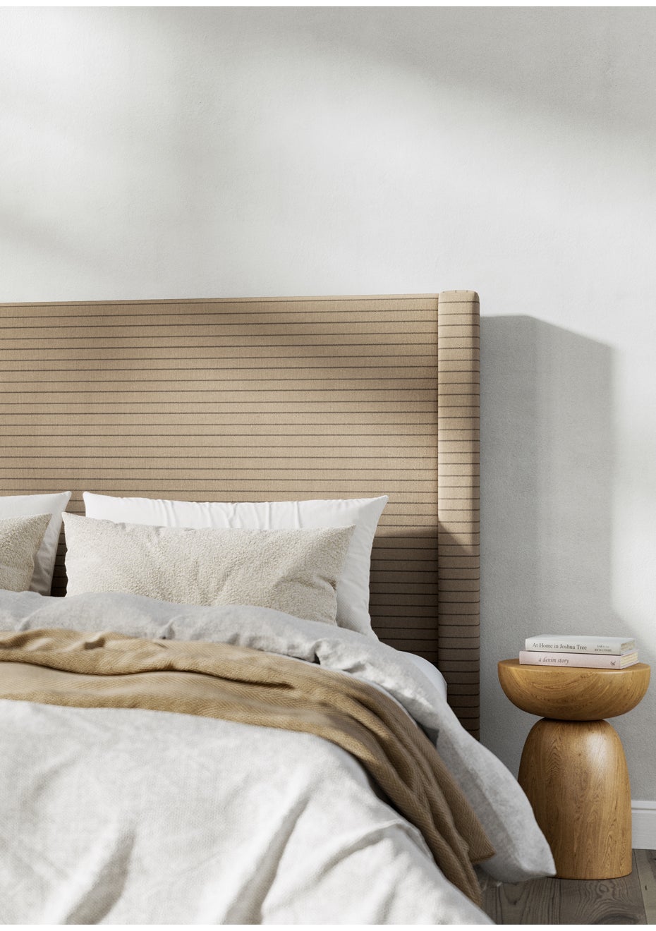 Introducing the Cove Headboard in textural linen look fabric, this bedhead was designed to bring elegance and sophistication in a neutral shade that pairs up seamlessly with many decor schemes.