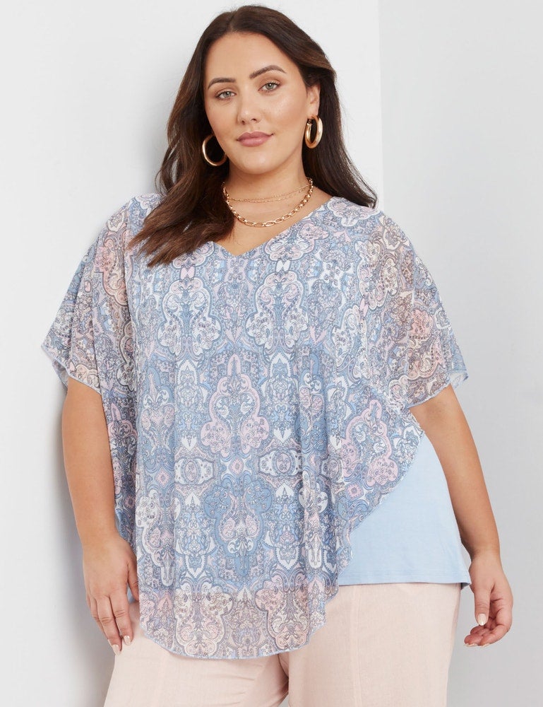 Womens Beme Elbow Sleeve Knit Mesh Layered Top - Plus Size Curvy