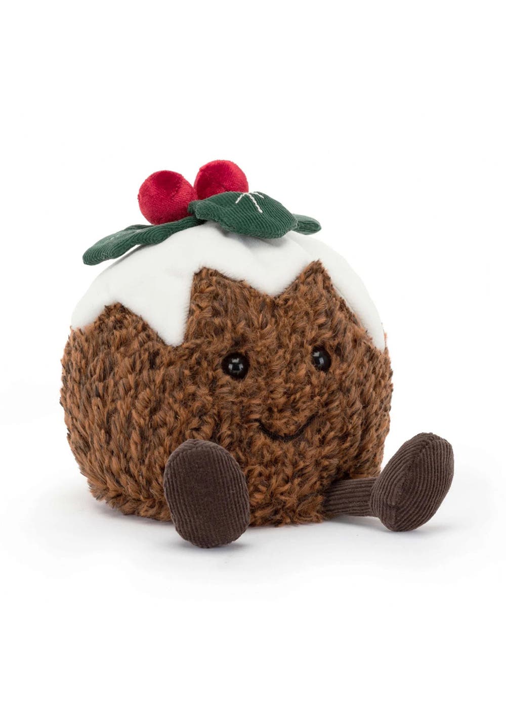 Amuseable Christmas Pudding is splendidly round in gorgeous two-tone fruitcake fur. This festive pudding rocks a cream suedette drizzle, red velour berries and stitched cord leaves.