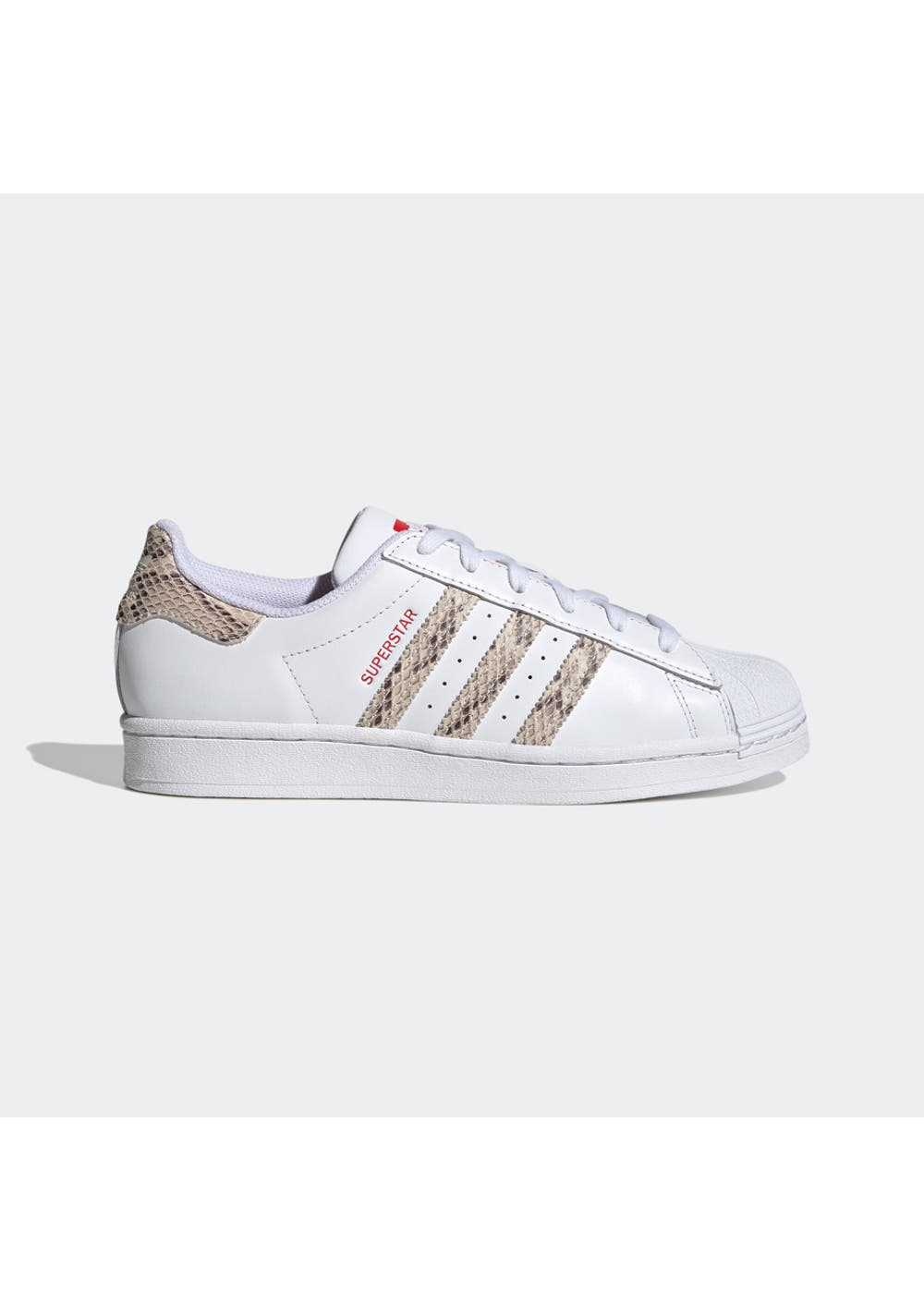These adidas Superstar Shoes live on the wild side. Just like with the original trendsetters from the '70s that brought leather low tops to the hardwood, you can't stay on the sidelines wearing these shoes — and you won't want to. Get an edgy update to your wardrobe with eye-catching snakeskin graphics on the serrated 3-Stripes and heel tab. Make an entrance with the iconic shell toe and contrast adidas branding that pops. Made with a series of recycled materials, this upper features at least 50% recycled content. This product represents just one of our solutions to help end plastic waste.