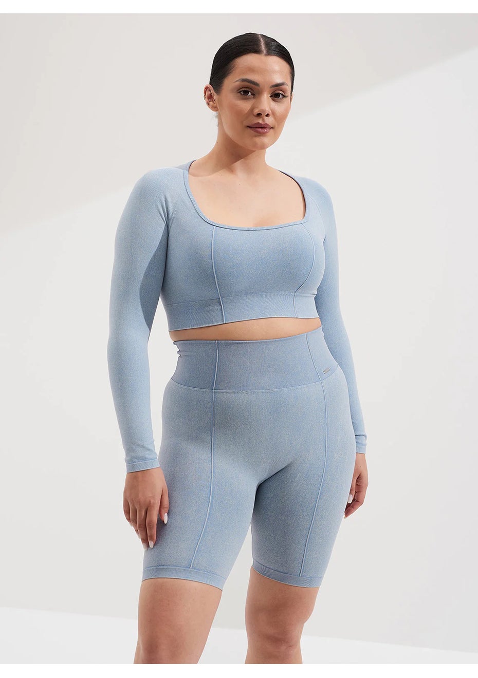 aim'n - Washed Light Denim Biker Shorts
