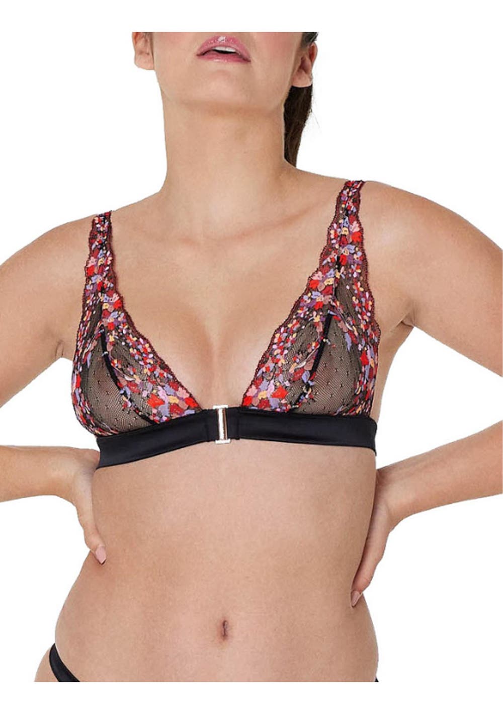 Sheer and sexy, the vibrant and luxurious Botanica Soft Cup Bra will have you feeling heavenly. The stunning lace is finished with a sumptuous satin band and gold accessories. - Delicately sheer extended triangle shape - Printed floral lace in an array of cascading colours add glamour - Luxurious satin binding with Signature Pleasure State gold accessories for a decadent finish - Fully adjustable straps for complete personalisation - Hook and eye closure at back for easy on and off - Stunning heritage design for the loyal Pleasure State lover Lace: 99% Polyamide 1% Elastane Satin: 92% Polyester 8% Elastane Exclusive Of Trims