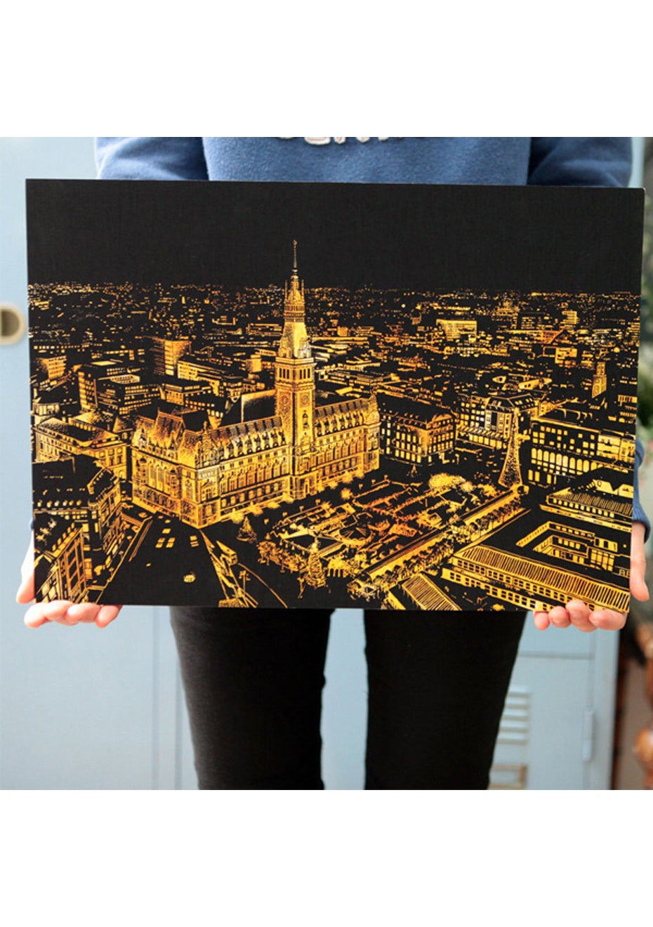 Features  Simplify the complex painting process. Products feature bright golden and patterns hidden beneath a matte coating, Scratch paper features a foil layer of sketches, Use scratch pen (not included) to scratch off black colored sketches, Revealing a beautiful night view underneath. It is easy to create exquisite and perfect works of art. Experience the feeling of being a painter.  Amazing creative artwork, Makes an excellent arts and crafts activity for kids or grown-up artists, keep busy with this delightful craft supply. This scratch off painting is exactly what you are looking for, easy, stress-free. Unleash a perfect mood for you and your child.  Complete engraving art set for any age artist. The size is excellent for kids and can be easily carried around say for a girls trip or your next trip to the grocery store.  Unleash your imagination, create your own glowing city view.  Package Include  1 x Scratch Paper (with outline)  1 x Scratch Paper (without outline) Material: Coated paper Product dimensions (LWH): 40.5×28.5cm Weight: 130g Material: Coated paper Product dimensions (LWH): 40.5×28.5cm Weight: 130g