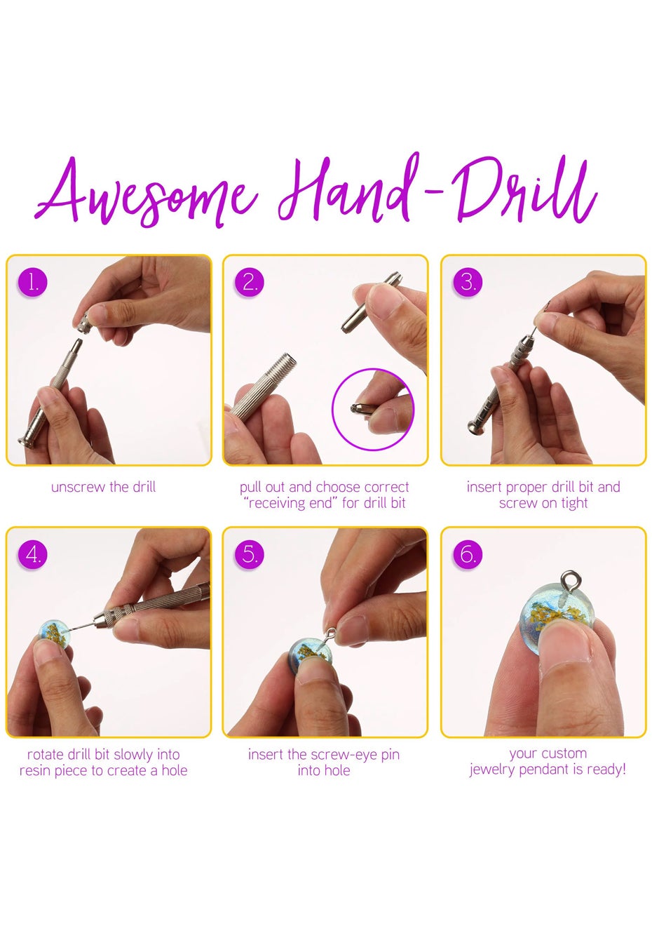 RESIN SILICONE MOLDS: Each jewelry mold is made of silicone - soft, flexible, durable, smooth and reusable; Molds are easy to use and clean; Screw eye pins are made of metal alloy; Hand twist drill is made of stainless steel