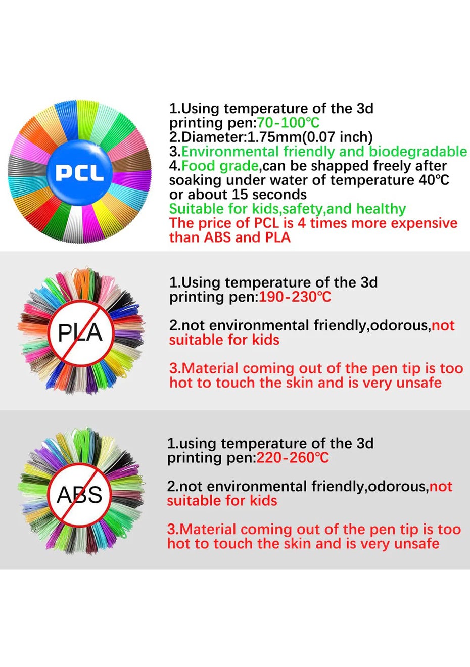 Quality Material: Made from 100% high-grade PCL, ensuring safe and non-toxic 3D printing, ideal for educational and professional use.
