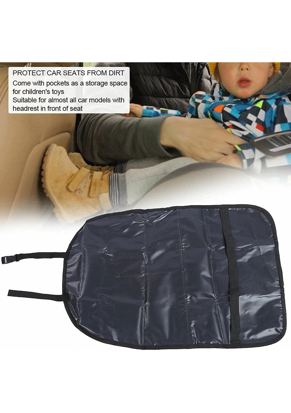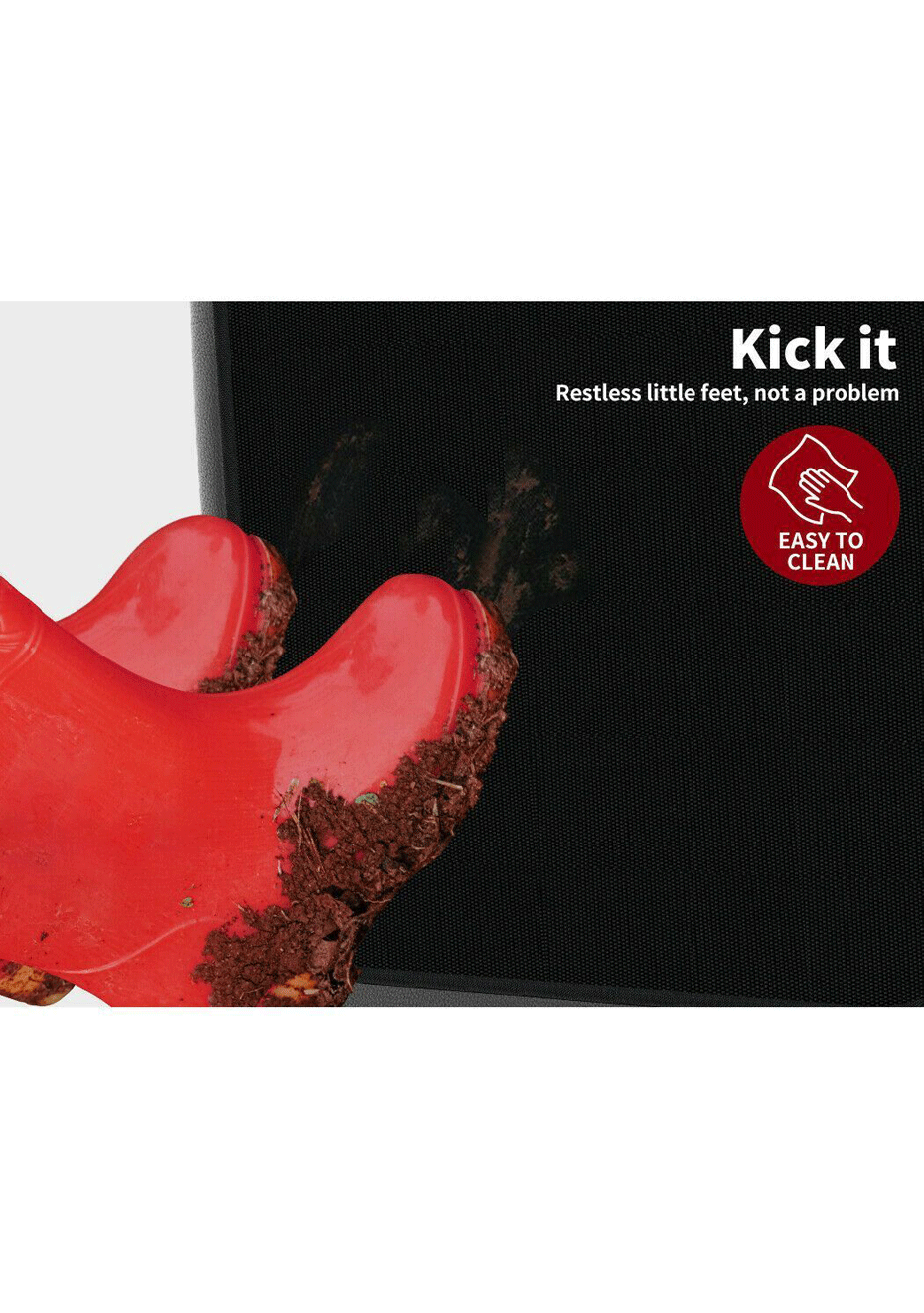 • UNIVERSAL DESIGN & GUARANTEED PROTECTION - Our large, 44 x 66 cm car kick mats are designed to cover your seat and protect your car’s interior from unwanted dirt, mud, and scuff marks. Our longer adjustable elastic straps guarantee a snug fit for most sedans, trucks, SUVs, and even minivans! And best of all, the heavy duty elastic straps never inconvenience you, the driver.