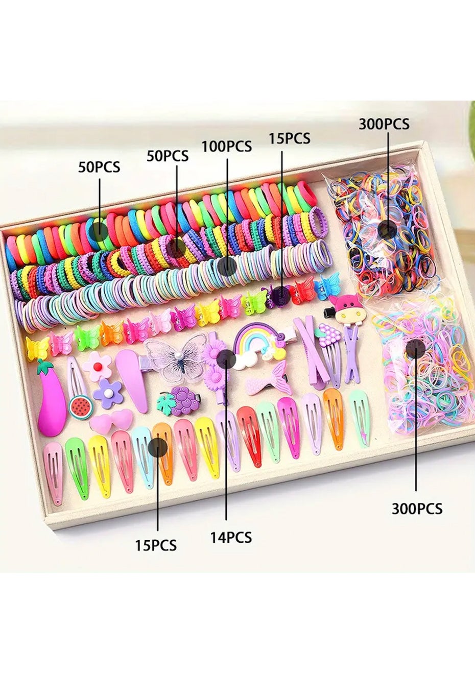 844 Pcs Cute Hair Tie Set for Girls Material: Cotton, Rubber Package Dimensions (LWH):20X12X6 CM Weight:150G Comprehensive Set: 844-piece collection including a vibrant variety of hair ties and adorable ice cream clip designs perfect for toddlers and young girls. High-Quality Materials: Made from soft cotton and durable rubber, these hair ties are comfortable and gentle on hair, reducing snagging and breakage. Versatile Usage: Ideal for everyday wear, these accessories are perfect for styling, braids, ponytails, and other fun hairstyles. They are also suitable for special occasions like parties and photo shoots. Adorable Designs: Features cute ice cream-themed hair clips that add a touch of charm and whimsy to any little girl's hairstyle. Perfect Gift: Making it an excellent gift for birthdays, Christmas, New Year, or any special event. Package Includes: 1X 844pcs Hair Tie Set