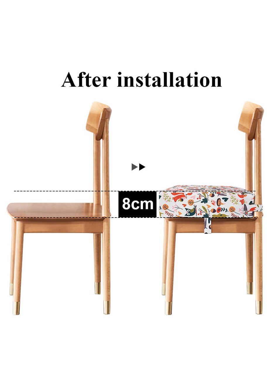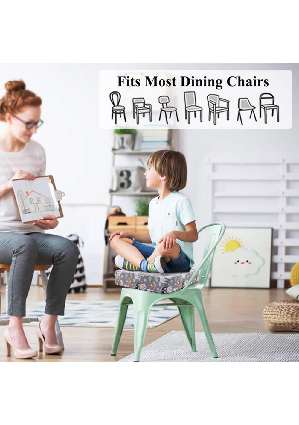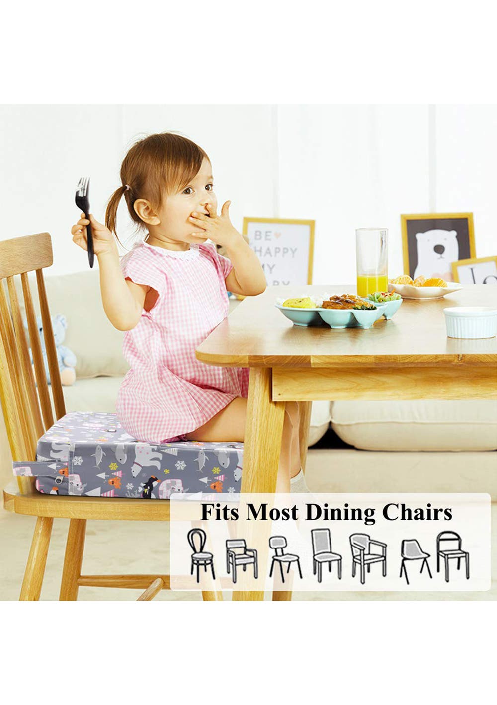 Comes with two straps so you can secure it under the chair and around the back. And it won't slip or slide around and fits most of dining chairs, and it not only ensuring the safety of your kids but also helping them enjoy their meal
