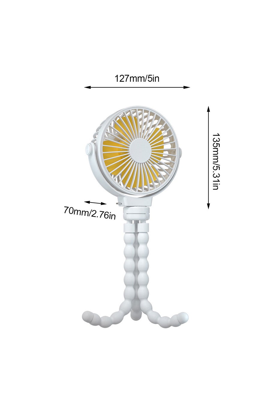 USB Rechargeable Flexible Tripod Baby Stroller Fan-White