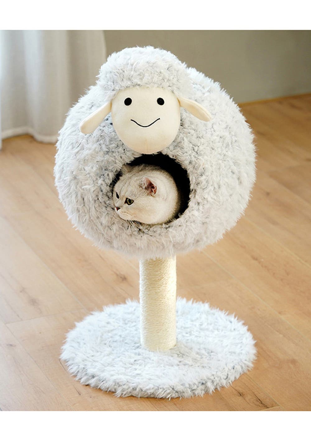 Cat Tree Tunnel Play Tree House Sheep Material: MDF Sisal Product dimensions (LWH): 42×42×77cm Package dimensions (LWH): 42x42x40cm Weight: 4Kg KEY FEATURES:  High quality natural sisal. Choose 6mm 9-core sisal, scratch resistant and won't hurt your cat's paws!  The spring-loaded tail hangs from the cat's favorite pom-pom, always interacting with the cat and keeping him entertained!  The large round mouth skylight gives the cat a new perspective so he can see different things and stand up to sharpen his paws!  Fun tunnels, tunnel-like bodies for cats to burrow around in and rest on when tired of playing!  Package Include  1 x Cat Tree Tunnel Play Tree House