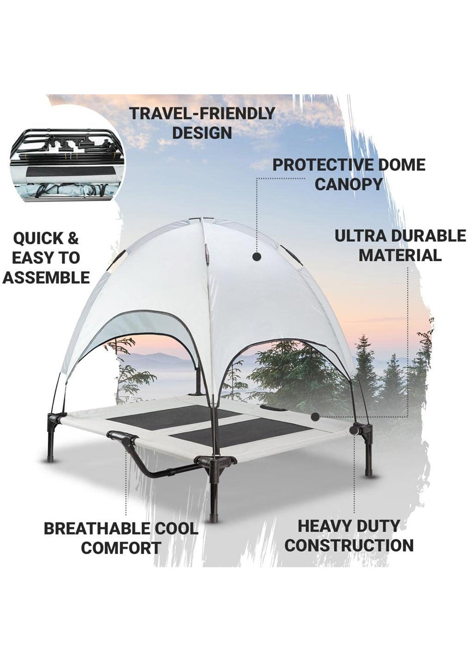 The canopy dog bed's elevated design raises your pet 18cm off the ground, keeps your pet away from hot, cold, damp or hard surfaces, no more sore hips, elbows, or shoulders