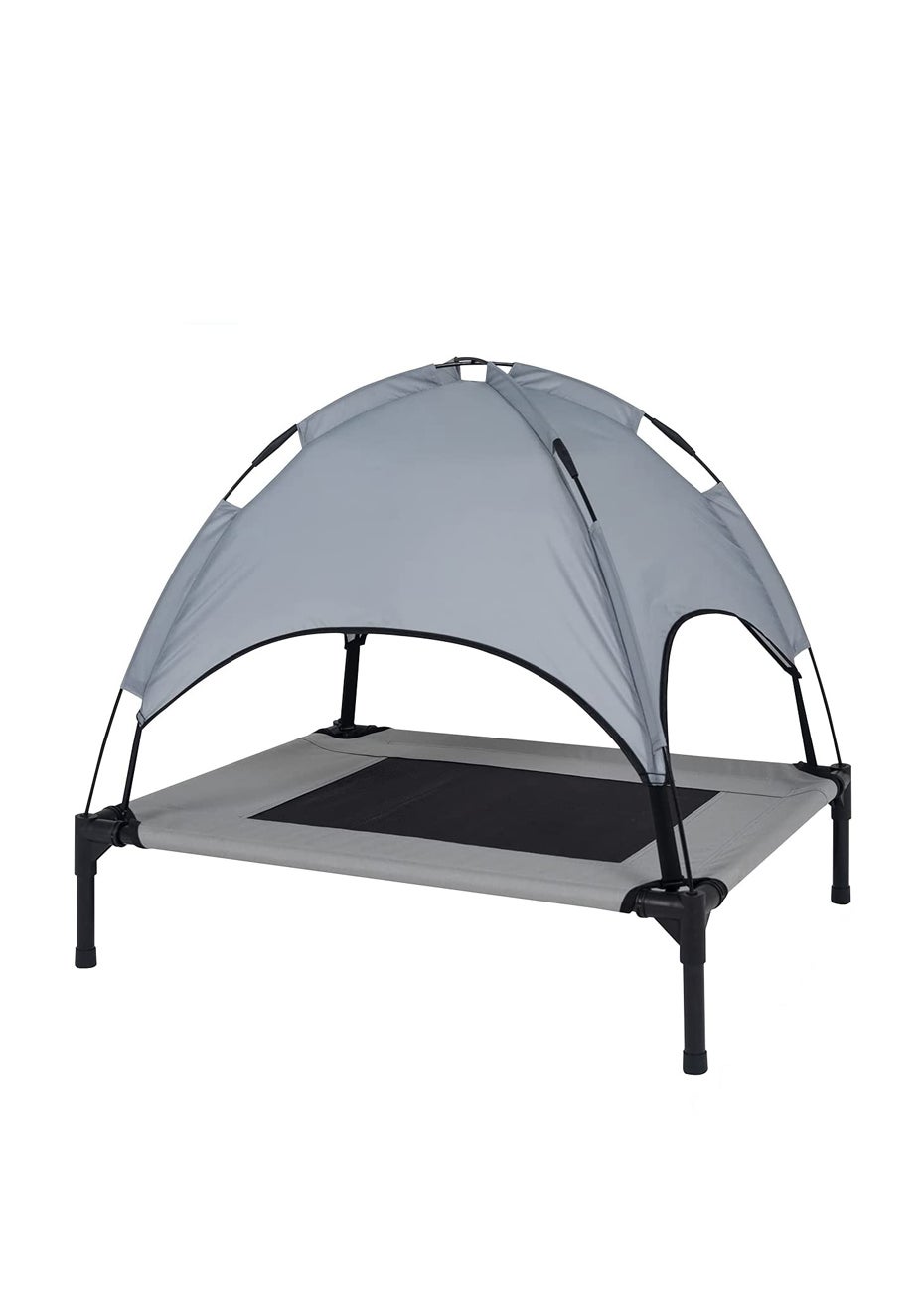 Elevated Outdoor Dog Bed with Canopy M Material: 600D Oxford cloth, Textilene Mesh, Steel Product dimensions (LWH): 76×61×18cm Package dimensions (LWH): 74 x 10 x 10 cm Weight:2 kg KEY FEATURES:  The canopy dog bed's elevated design raises your pet 18cm off the ground, keeps your pet away from hot, cold, damp or hard surfaces, no more sore hips, elbows, or shoulders  Dog bed with canopy not only providing them with a comfortable place, protect the joint health of your pet.  Sturdy&Durable Design:The dog bed made of durable, sturdy 600D oxford fabric with breathable textilene mesh,it is tough enough to withstand a dog's scratching paws.  Sturdy paint-coated steel frame provide more stability which can hold up to 50kg  Elevated dog cot's raised design keeps your dog out of the dirt, provides a comfortable sleeping surface on any terrain, and allows air to flow so your dog stays cool.  Package Include:  1 x Elevated Outdoor Dog Bed  1 x Canopy  1 x Manual