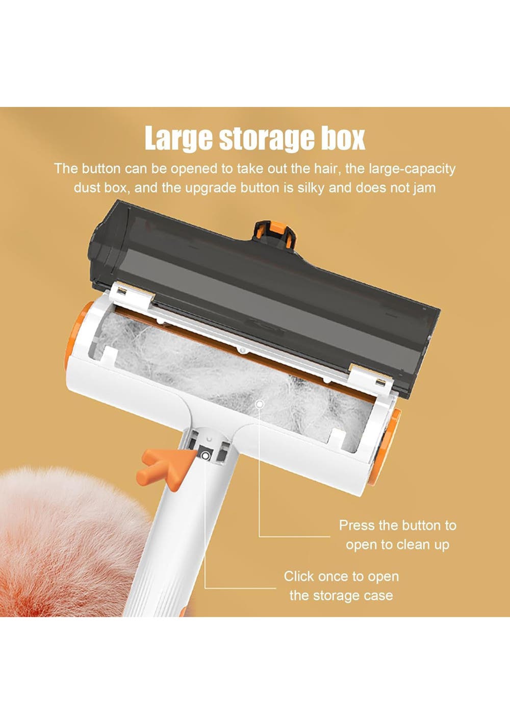 Pet Hair Remover Roller Material: ABS Package Dimensions (LWH): 22 x 20 x 5 cm Weight: 150g Say Goodbye to Pet Hair with the Ultimate Cleaning Tool! Effortless Pet Hair Removal! - Tired of finding pet hair all over your home? Our Pet Hair Remover Roller is your new best friend! With its powerful static charge material, it effortlessly picks up pet hair from carpets, furniture, rugs, and more. Just a few strokes and watch the magic happen! Works on All Fabrics - Whether it's velvet sofas, fluffy rugs or cozy cushions, our roller can handle it all. Note: Best results on fabric surfaces, not recommended for smooth, hard surfaces. Self-Cleaning, Zero Hassle - Forget the mess of cleaning the cleaner! Our innovative self-cleaning system means no washing is needed. Just swing the handle a few times, and the roller cleans itself, storing all hair and fur in the compartment for easy disposal. Eco-Friendly and Economical - No need for refills or replacements! Our reusable roller is not only good for your wallet but also for the planet. Versatile and Effective - From dog and cat hair to rabbit fur and even fine dust, our roller makes cleaning up a breeze. It's perfect for pet owners who love their pets but not the mess they leave behind. Package Includes: 1 x Pet Hair Remover Roller