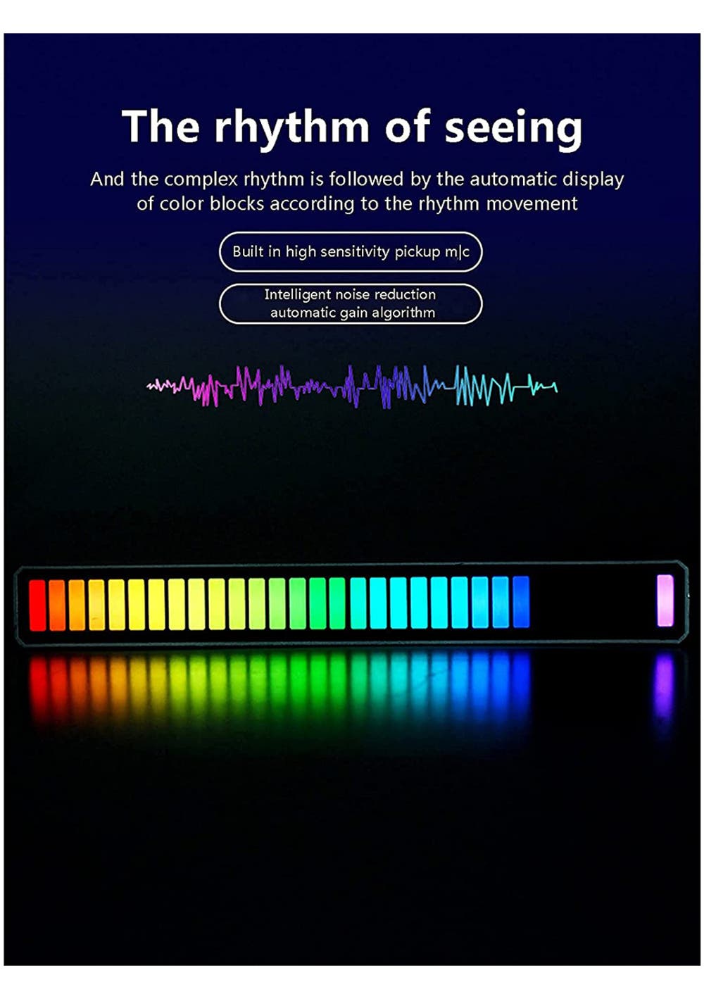 With 32 colorful LED lamp beads, highly sensitive microphone and noise cancellation function, atmosphere light can realize dynamic expression of music and human voice.