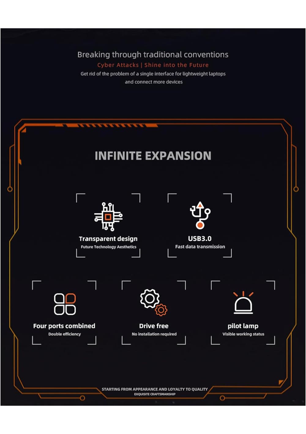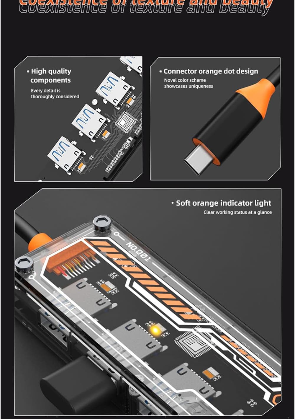 Smart Indicator Lights: Features an orange light for USB 3.0 connections and a blue light for USB 2.0, making it easy to monitor your device's connectivity and status.