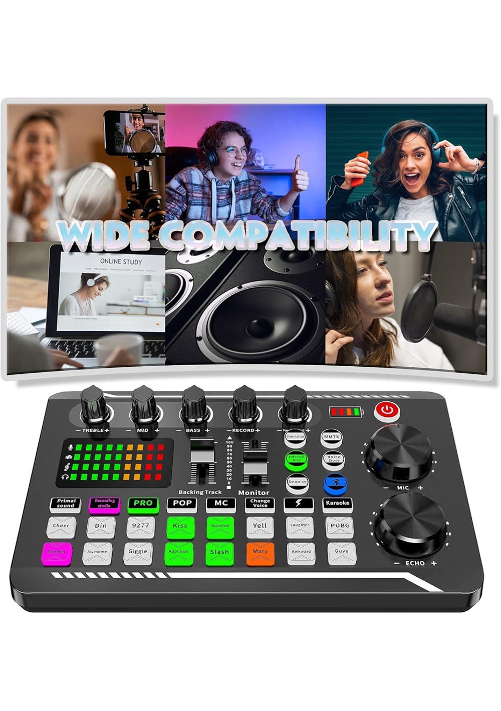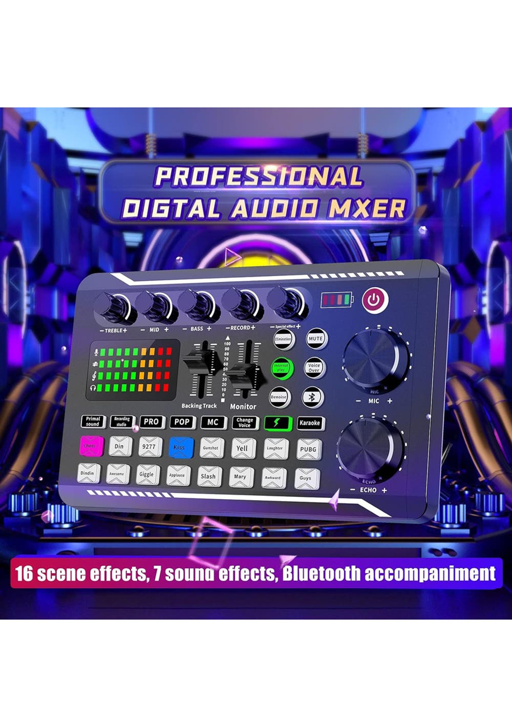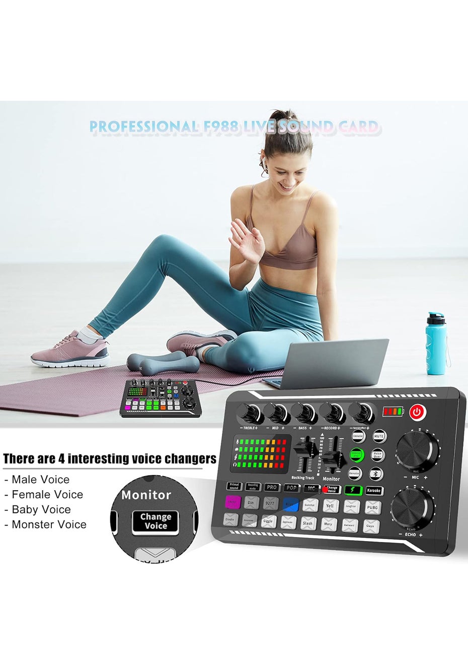 Elevate your podcasting, streaming, and recording sessions with our Professional Audio Mixer. Designed with versatility and high-quality performance in mind, this audio mixer includes a wide range of features to enhance your audio experience. Equipped with the latest F988 sound card and imported DSP dual chip, it offers excellent noise reduction and high-fidelity sound capture. Ideal for both project and home-studio applications, this audio mixer is compatible with multiple devices and operating systems, ensuring seamless integration into your setup.