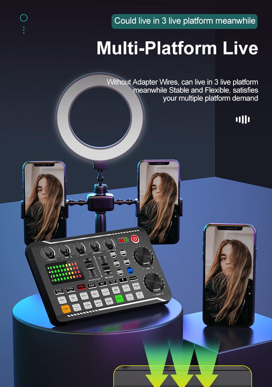 Multi-Application Compatibility: Fully compatible with most mainstream operating systems, including Windows and Mac OS, as well as iPad and smartphones (iPad, iPhone, adapters may be required). It supports connecting three mobile phones for live streaming on different platforms simultaneously. Suitable for gaming, live streaming, podcasting, voice-over, recording music, and more.